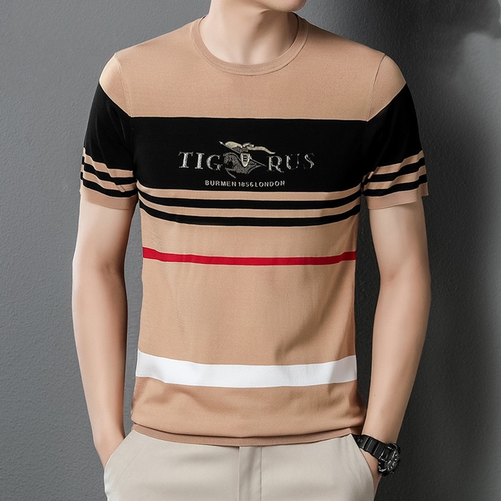 NP Men's Short-Sleeved T-shirt Stripes Round Neck Trend Tshirt