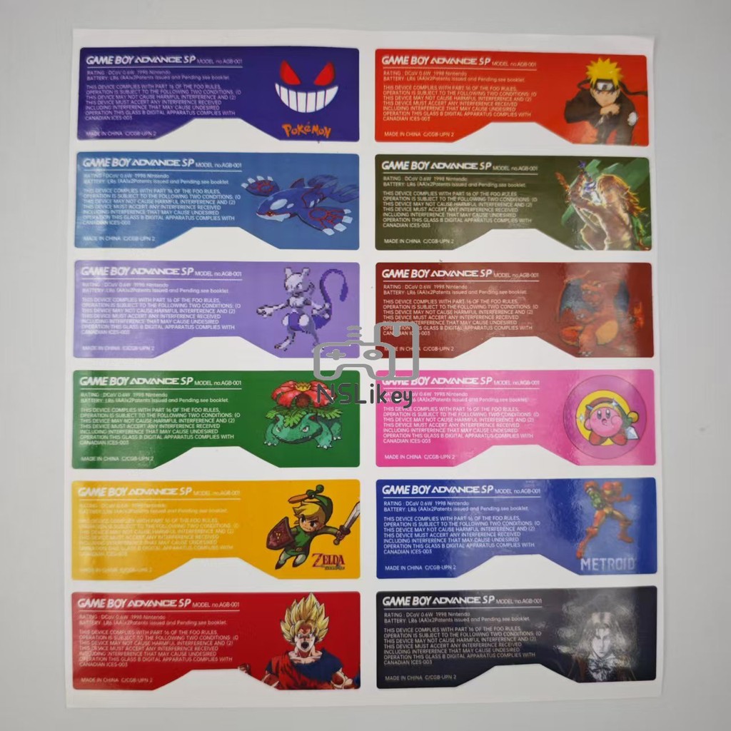 NSLikey 1set Back Tag Label Sticker Custom Design for Nintendo Gameboy Advance SP GBA SP Console Label Sticker