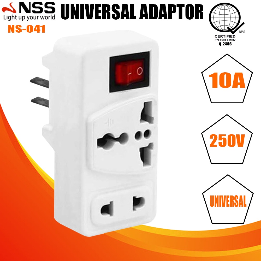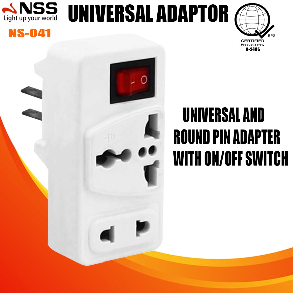 NSS-041 Universal Adaptor Round Pin Adaptor With Switch Travel Adapter Plug