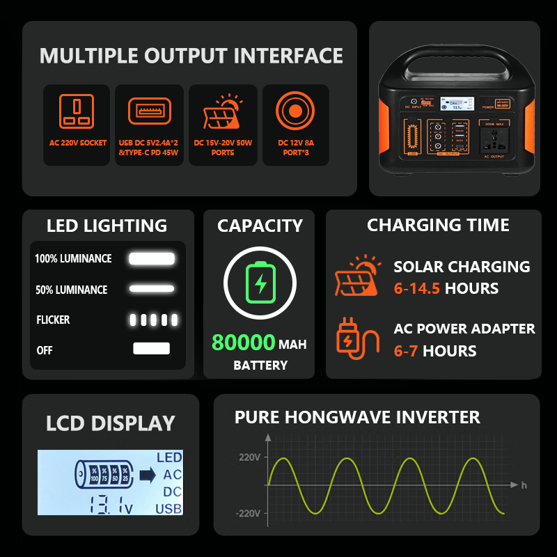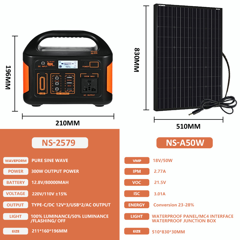 NSS 300W Solar Power Station 80000mAh Pure Sine Wave Generator with 100W Solar Panel