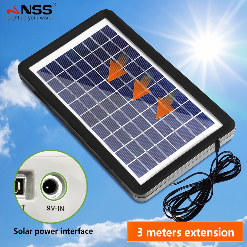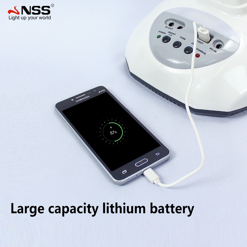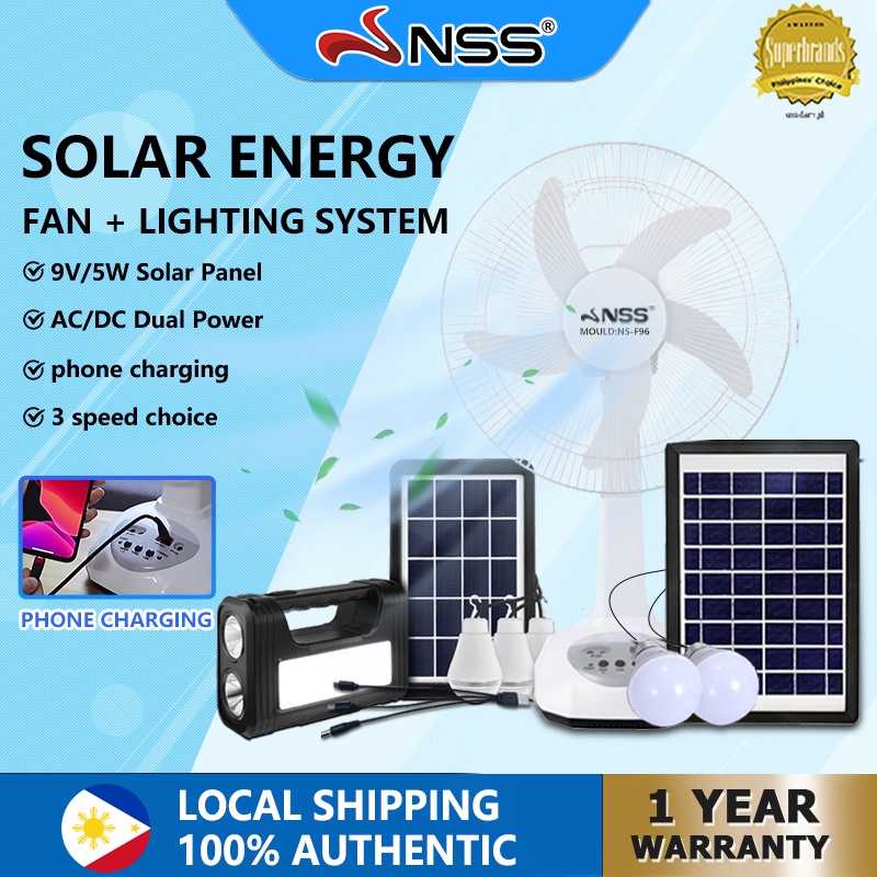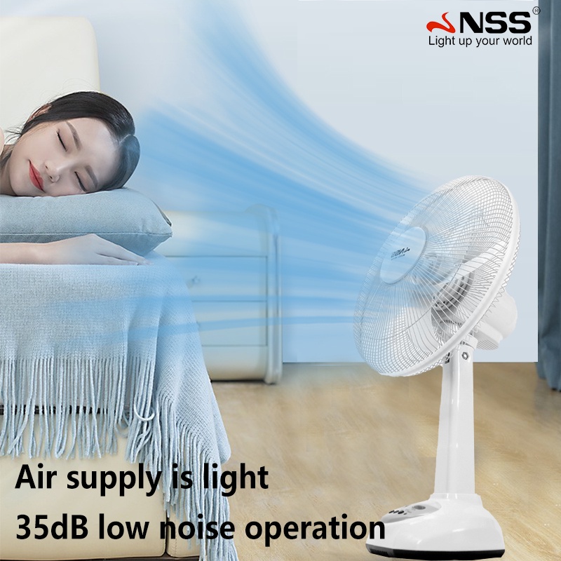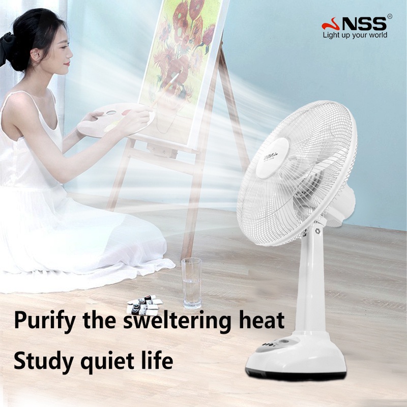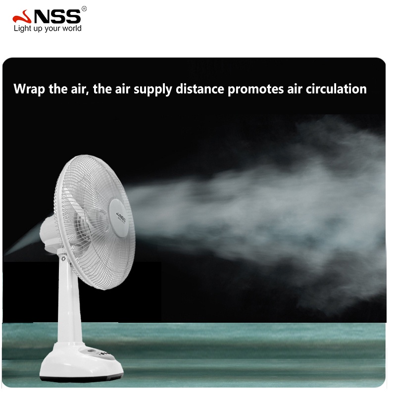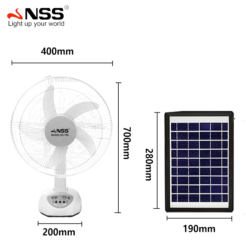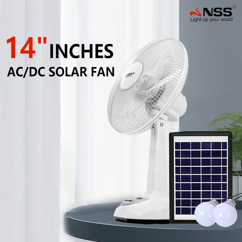 NSS Solar Electric Fan With Panel 14'' 12' Rechargable Fan LED Bulb Solar Desk Fan Home Cooling Fan