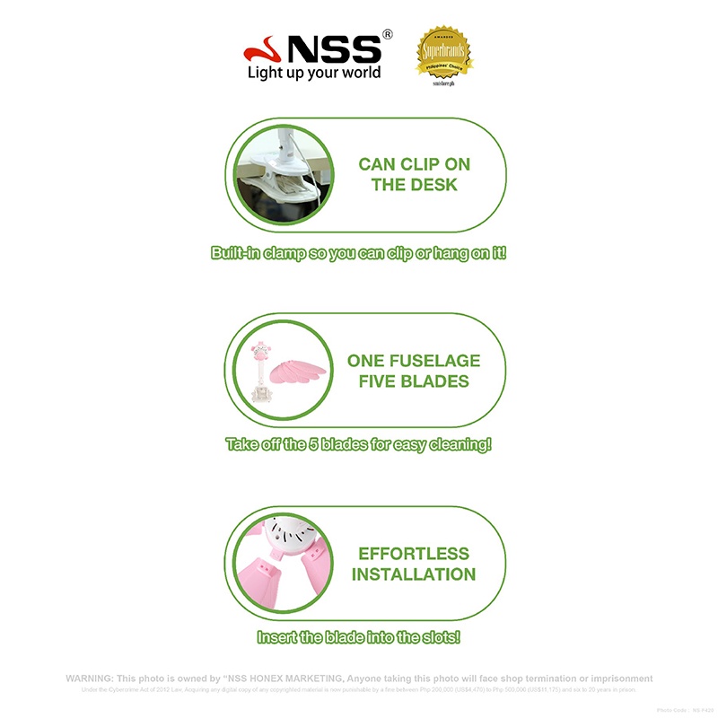 NSS Clip Fan Portable Electric Clip Fan Household Clip Fan Anti-Heat Fan Table Fan with 5 Blades