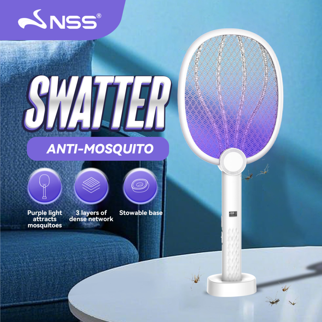 NSS Electric Mosquito Killer 1200mAh Rechargeable Portable Swatter Racket Bug Fly Zapper with Base
