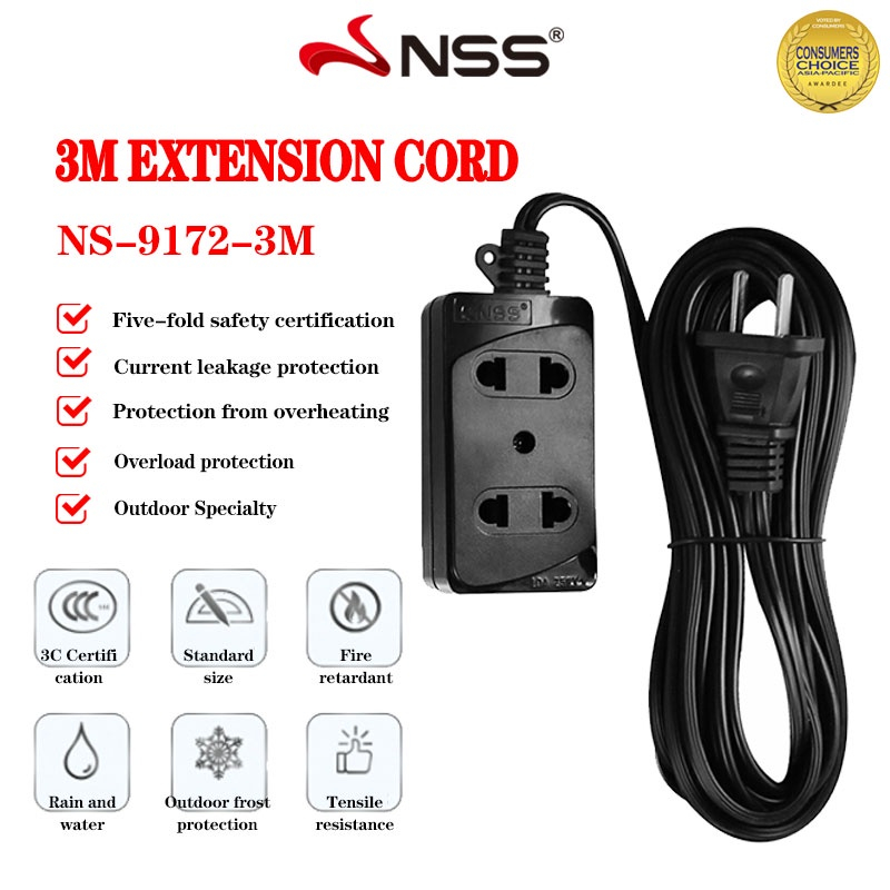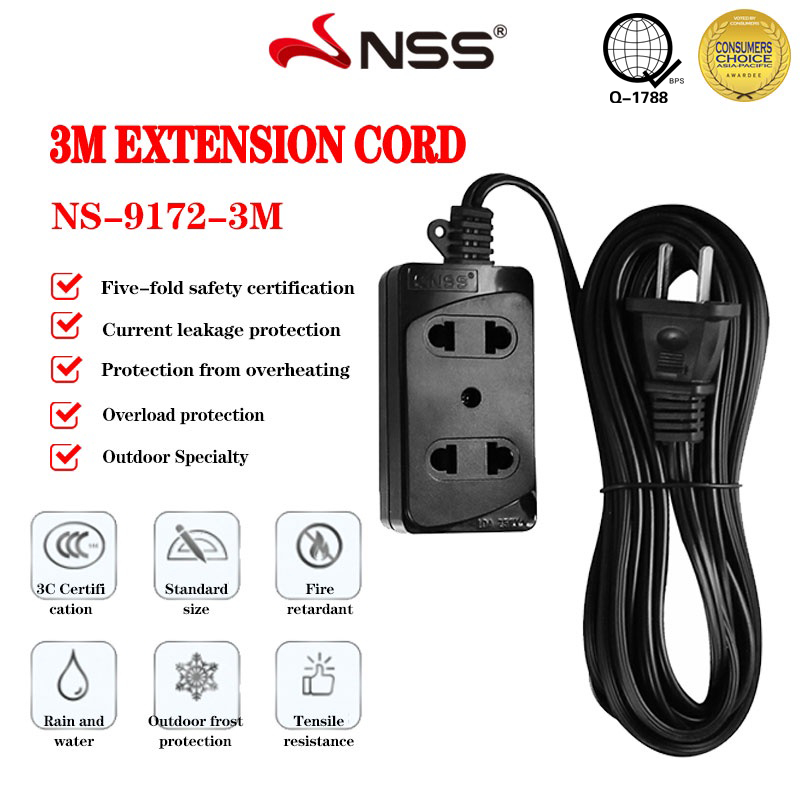 NSS Extension Cord 3 meter anti-freezing protection overheating prevent insulation protection cord
