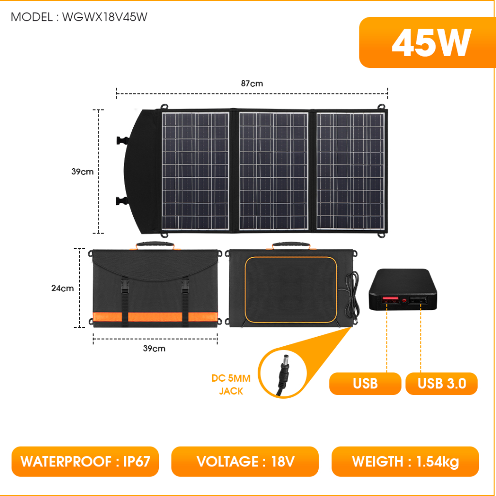 NSS Foldable Solar Panel Charger 18V 30W Portable High Output Solar Charger Outdoor Power