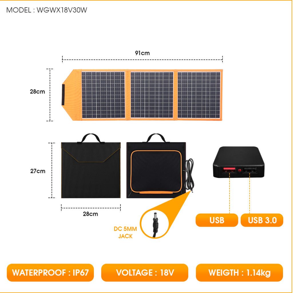 NSS Foldable Solar Panel Charger Portable Power Charger Outdoor 30W or 45W or 60W or 100W or 200W