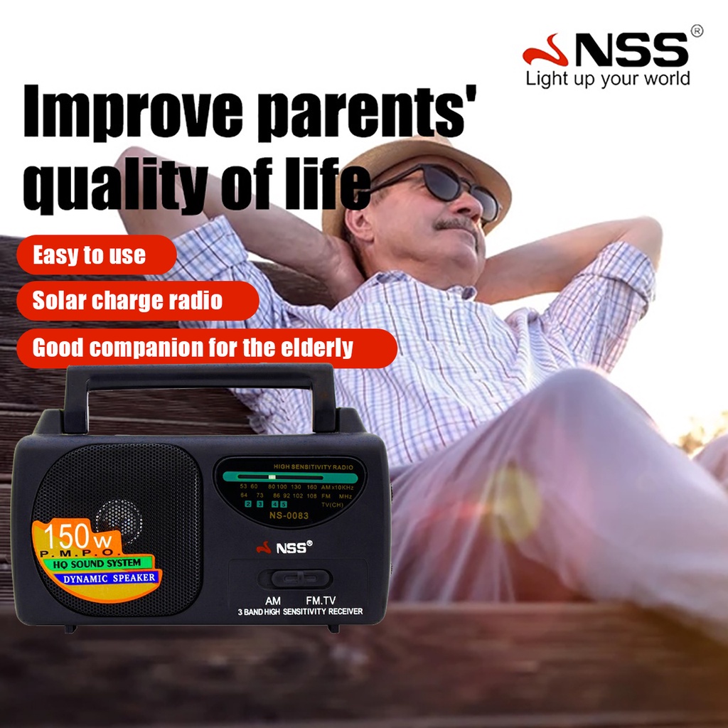 NSS High Sensitivity Receiver Radio 3 Band/4 Band Ac Dcam AM/FM//TV Rechargeable Radio Speaker