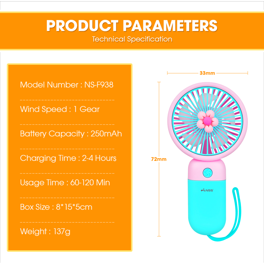 NSS Mini Fan Electric Fan Rechargable Fan Desktop Fans Travel Handheld Fan Portable HandyFan Cooling