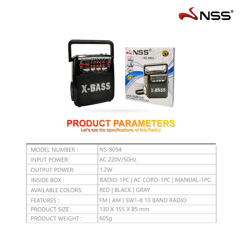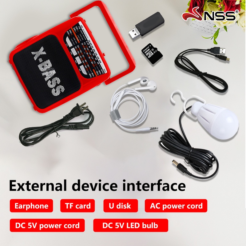 NSS Portable Radio MP3 Player SD/USB/AUX/FM/AM/SW 1-8 10 Band Radio with LED Light Big Speaker