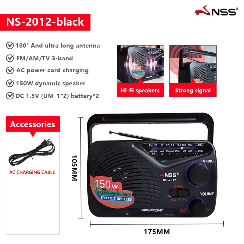 NSS Portable Radio with 3 BAND High Sensitivity AM/FM/TV Radio AC Charging Multimedia Speaker Radio