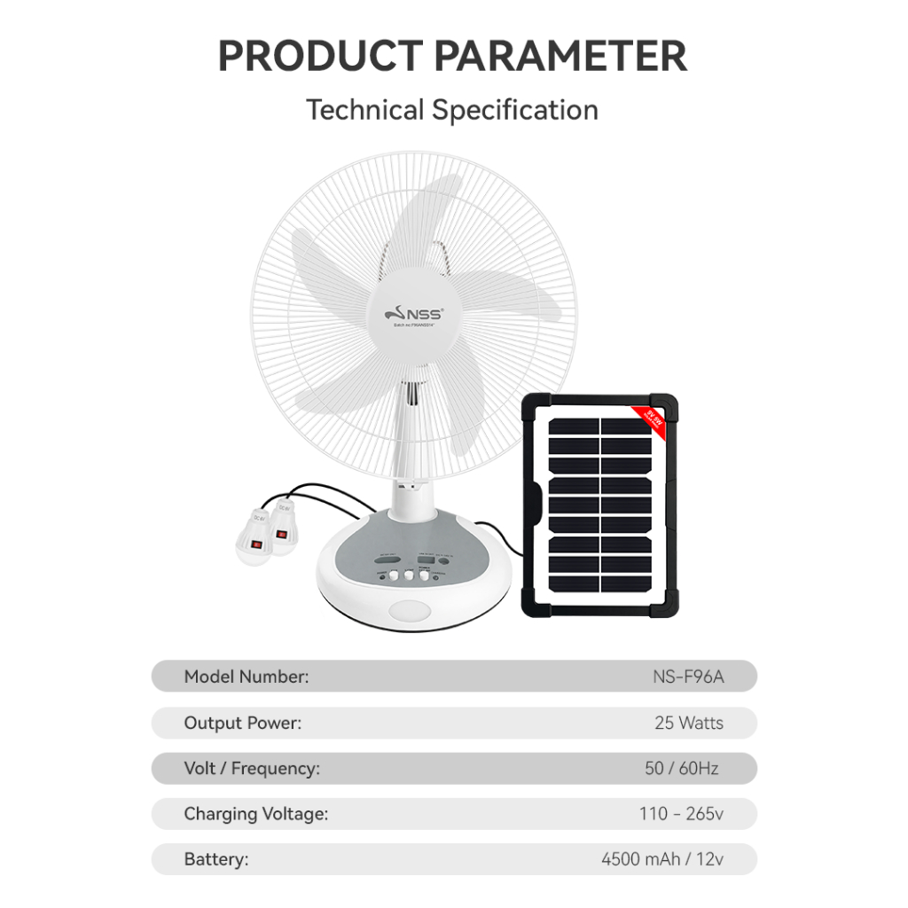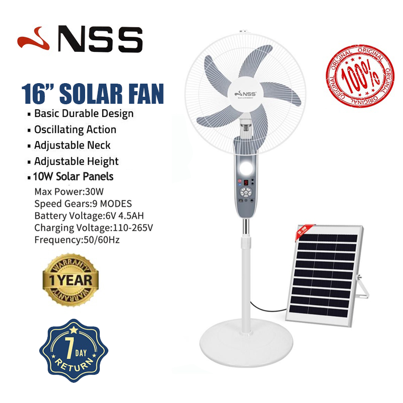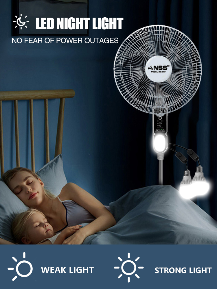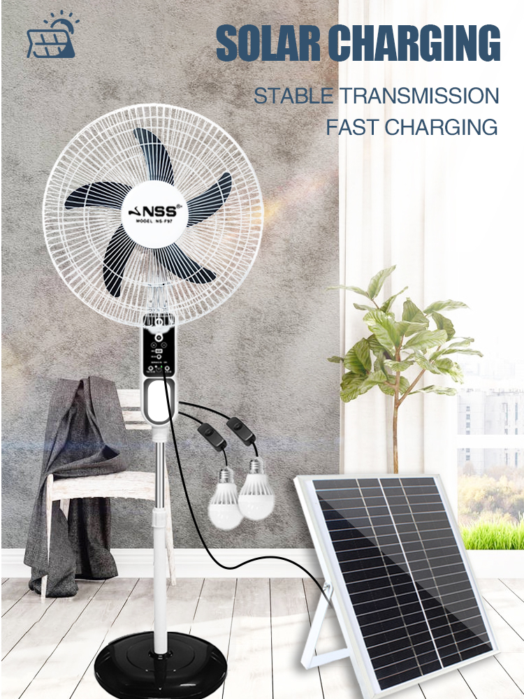 NSS Rechargeable 16" Solar Electric Fan AC DC 220V Solar Fan Mobile Charging with LED Light Panel