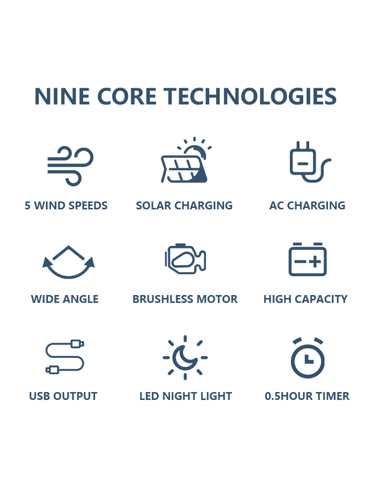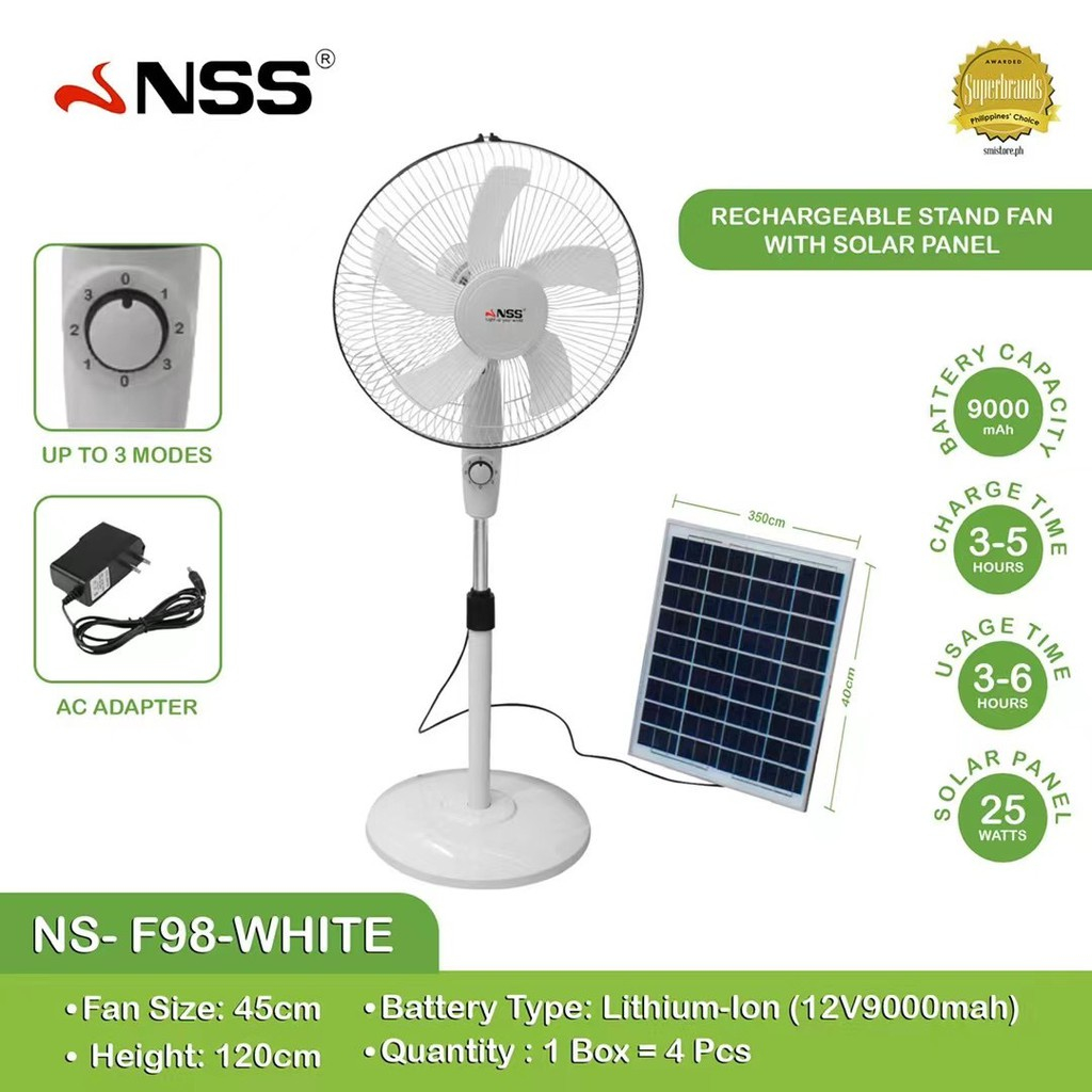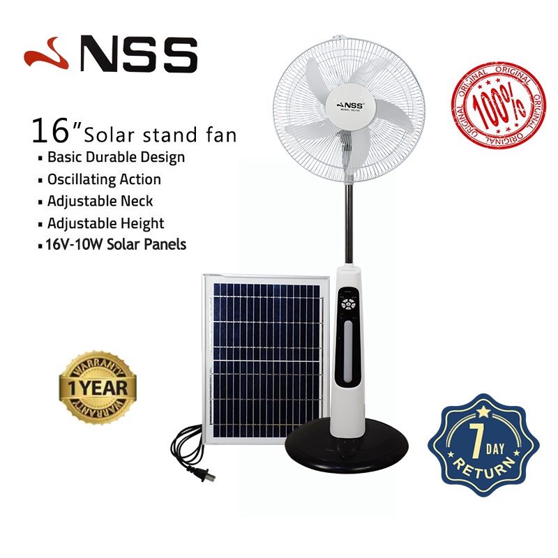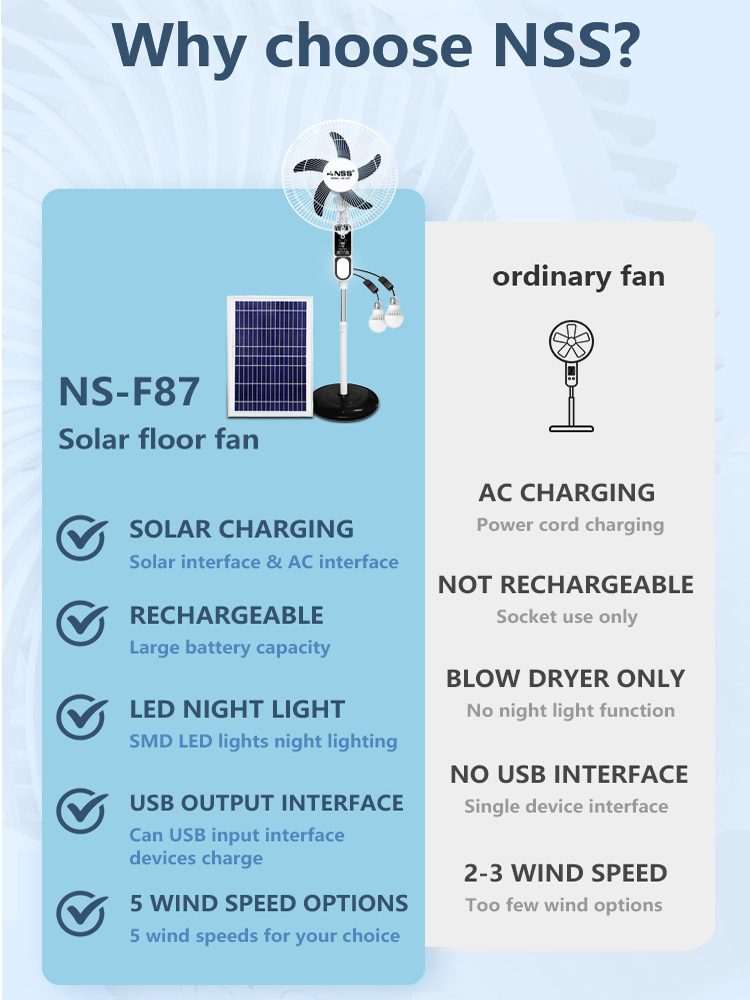 NSS Rechargeable 16" Solar Electric Fan AC DC 220V Solar Fan Mobile Charging with LED Light Panel