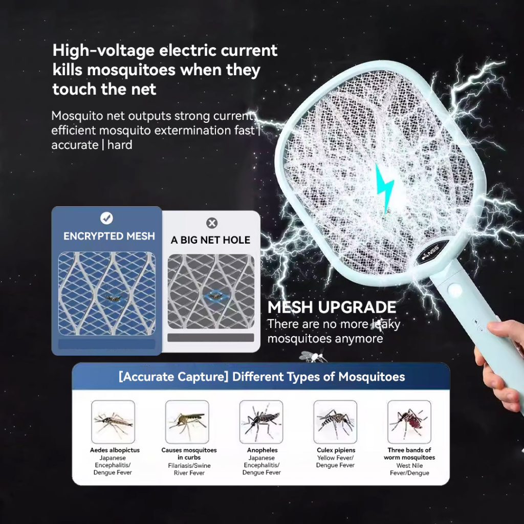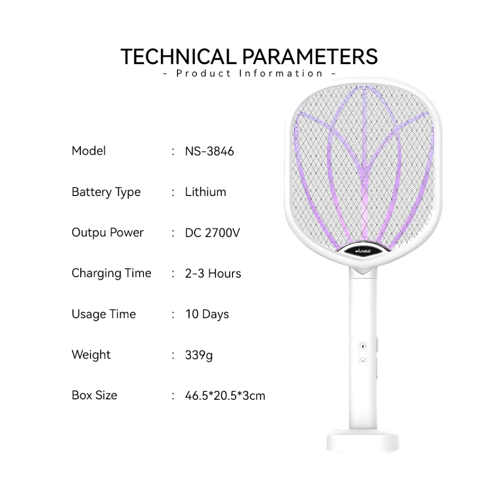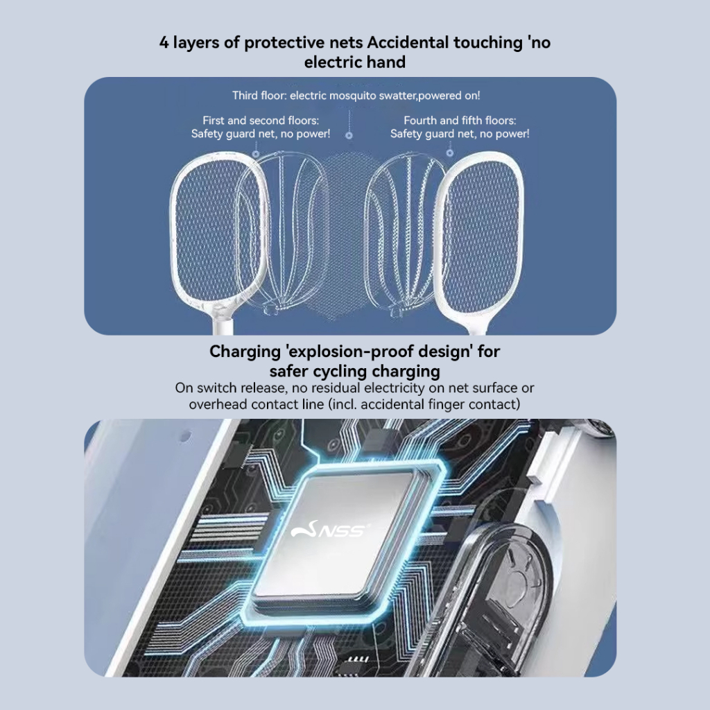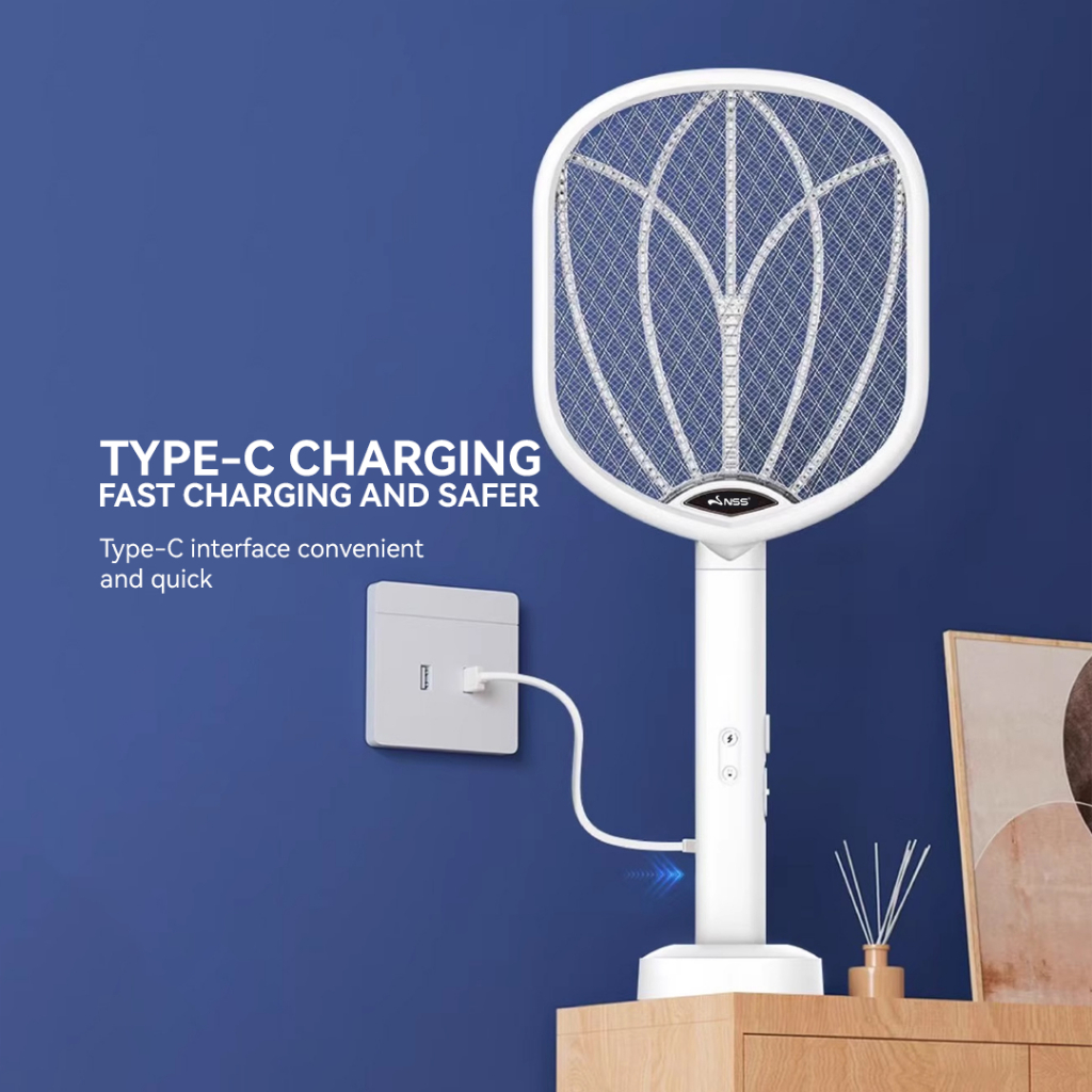 NSS Rechargeable Electric Mosquito Killer Racket Portable Bug Zapper Fly Swatter with Light