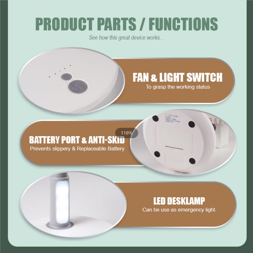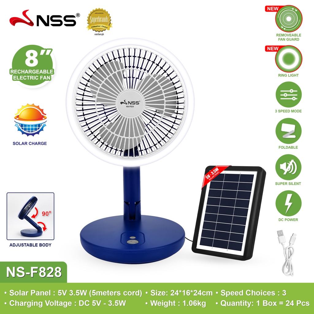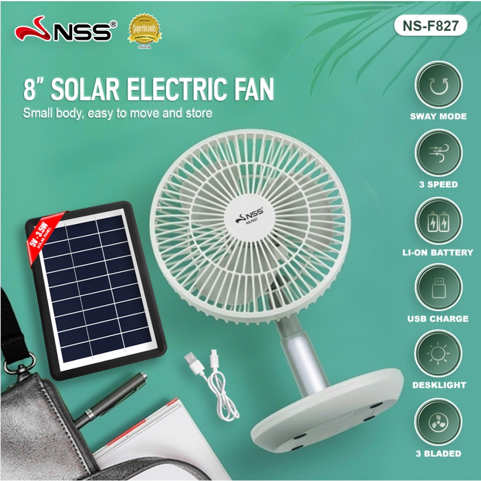 NSS Solar Desk Fan with Light 8"solar Rechargeable Fan solar Electric Fan with Panel retractable fan