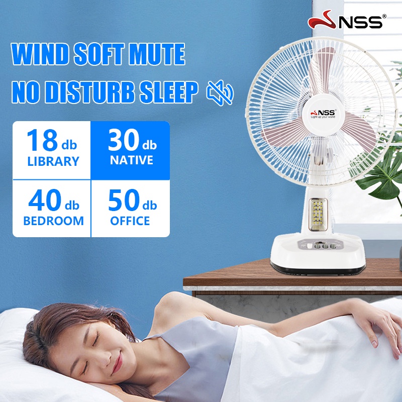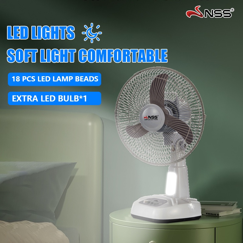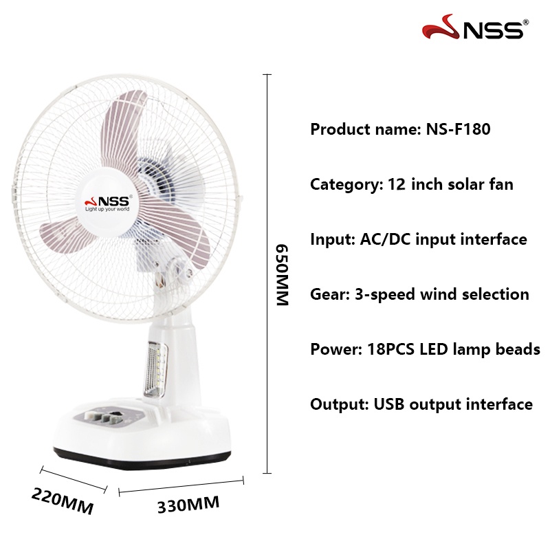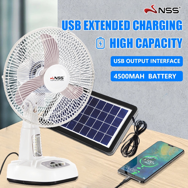NSS Solar Fan Rechargeable Solar Fan 12 inch Desk Fan with LED Light and Panel Solar electric fan