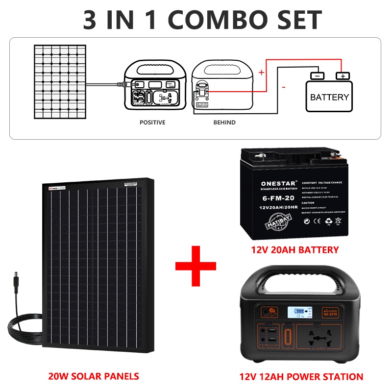 NSS Solar Generator 12000mah Multi-Function Portable Big Capacity Power Station Set 20W Solar Panel