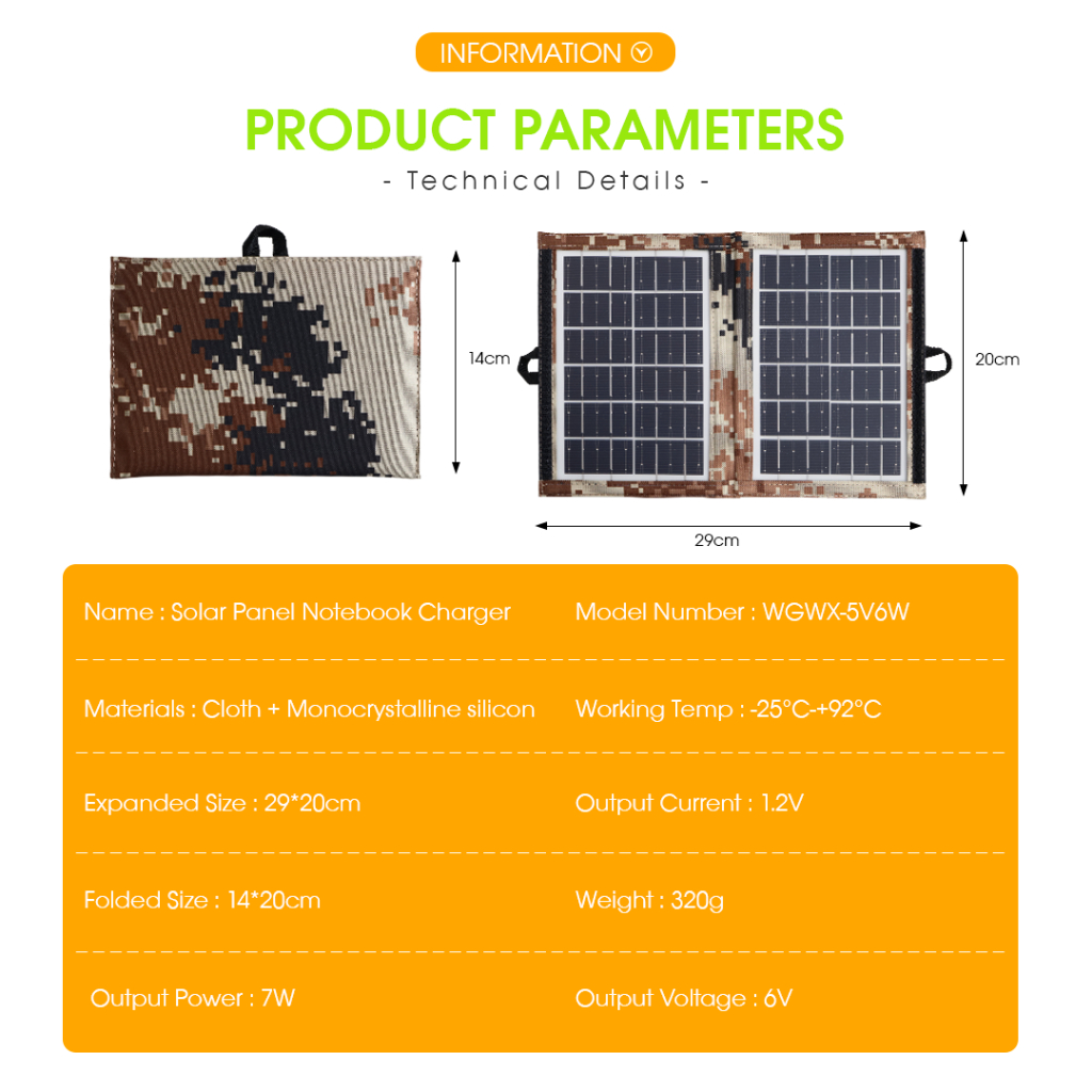 NSS Solar Panel Notebook Charger 5V 6W Foldable Outdoor Mobile Power, Multi-Device Charging