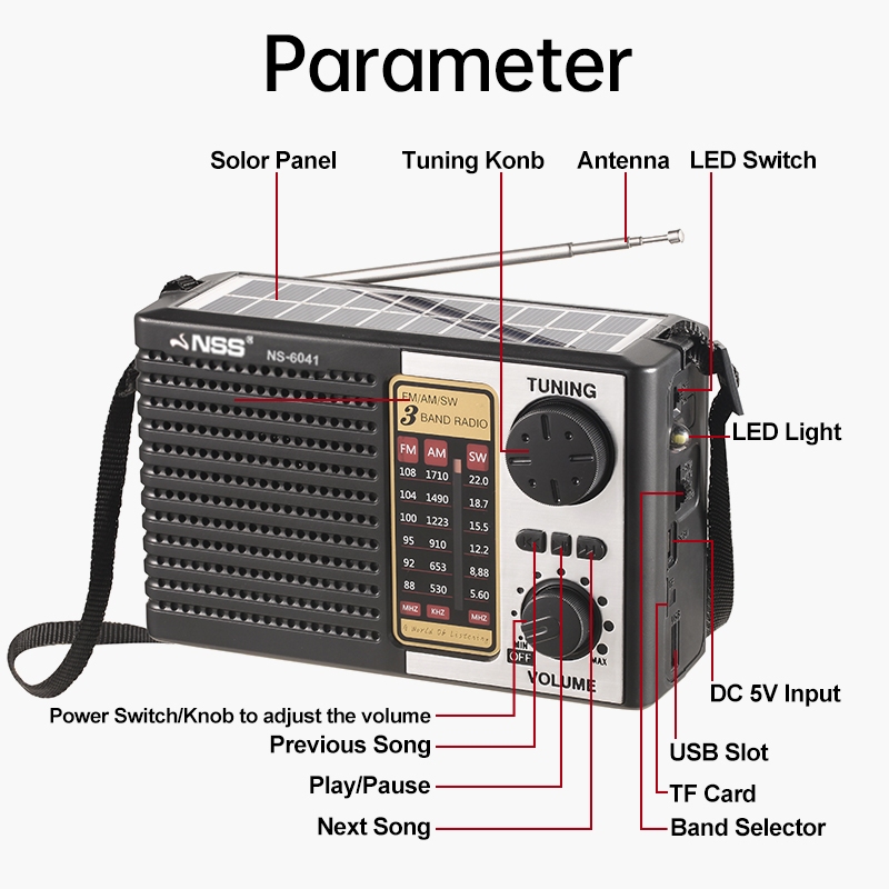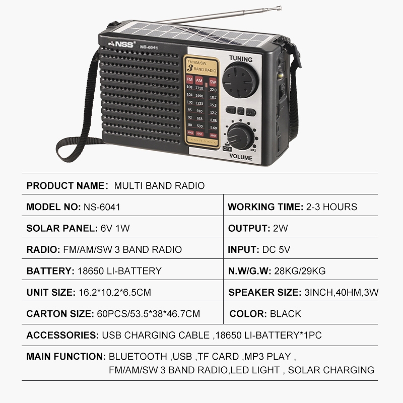NSS Solar Radio With LED Light Bluetooth Radio AM/FM/SW TF Card Radio Rechargeable Audio With Panel