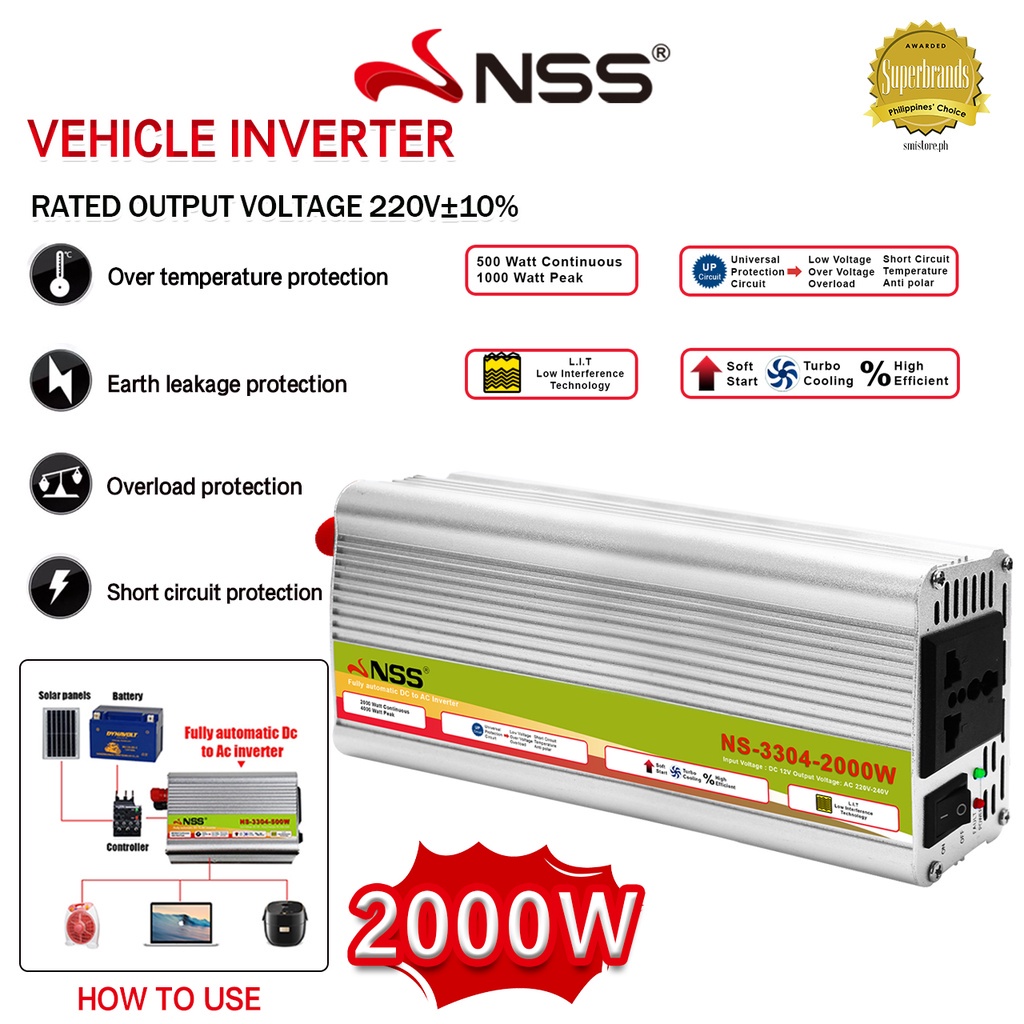 NSS Solar inverter power inverter car inverter Solar Energy Converter 12v to 220 DC 500w/1000W/2000W