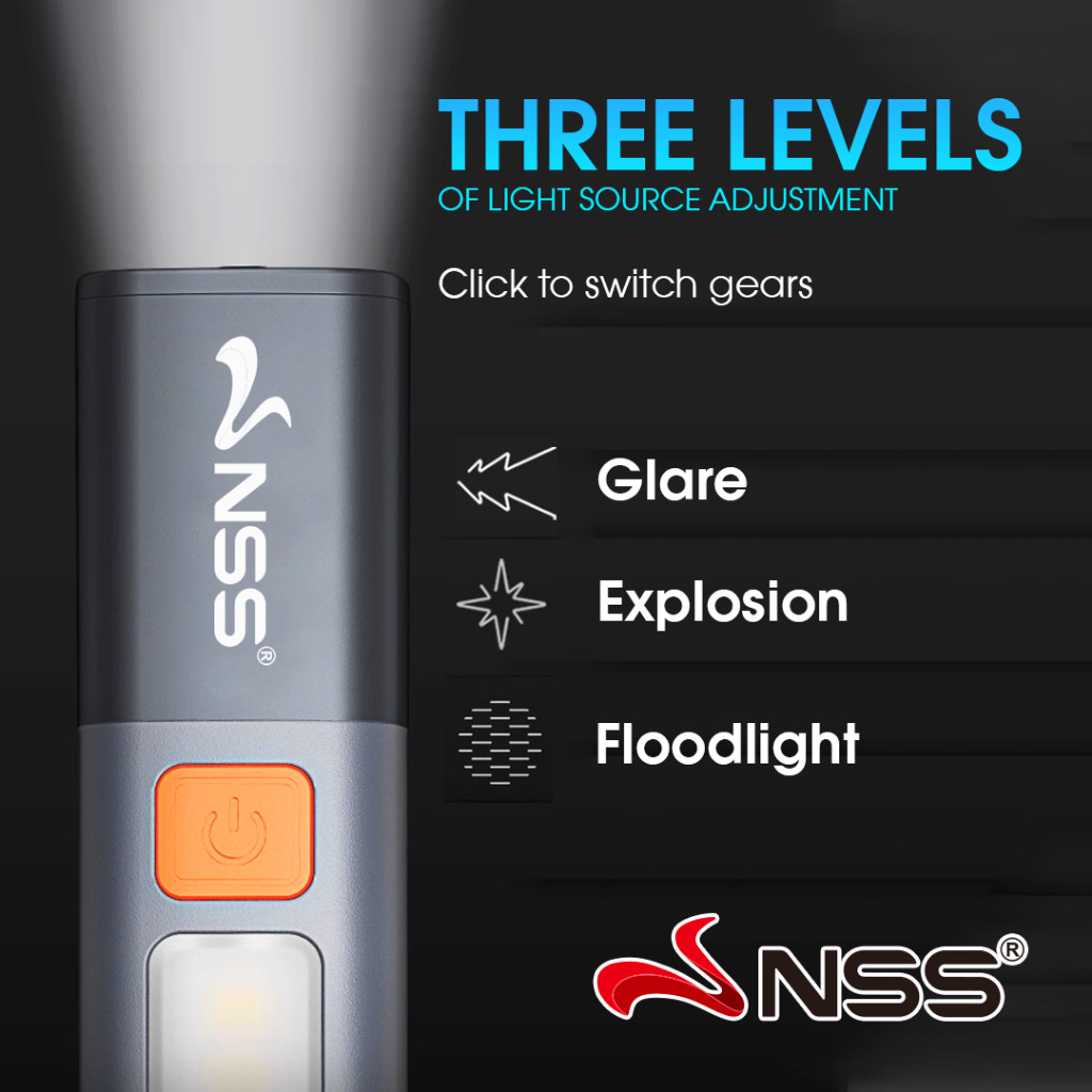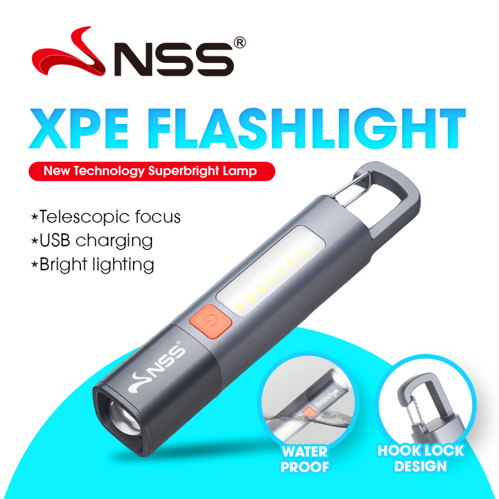 NSS XPE Flashlight USB Charge Waterproof Household Outdoor Super Bright Flashlight With Hook Lock
