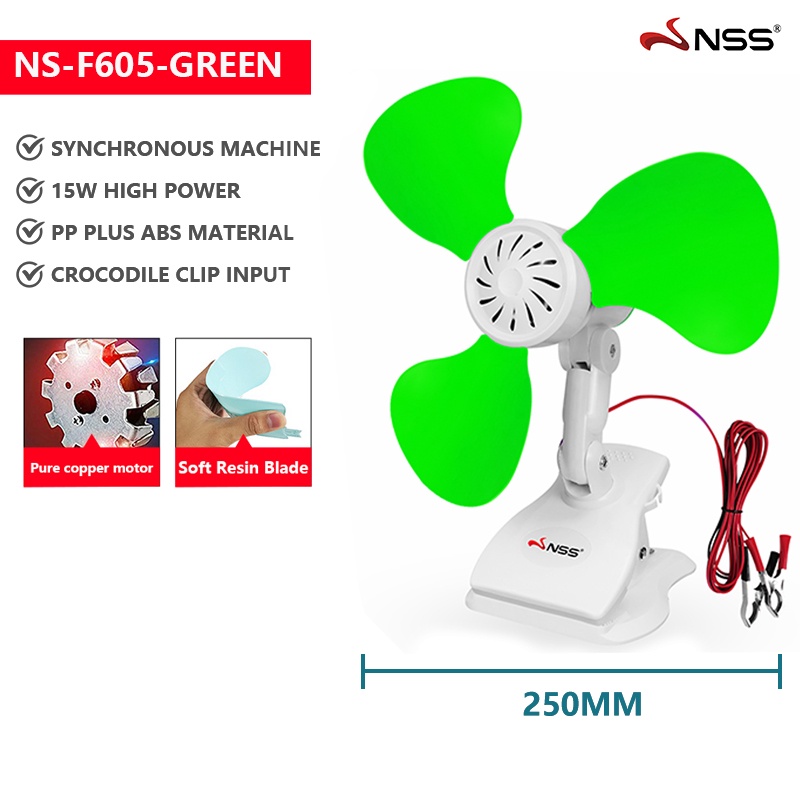 NSS dc 12v 3 blade Electric ceiling fan emergency Hanging fan with alligator clip to connect battery
