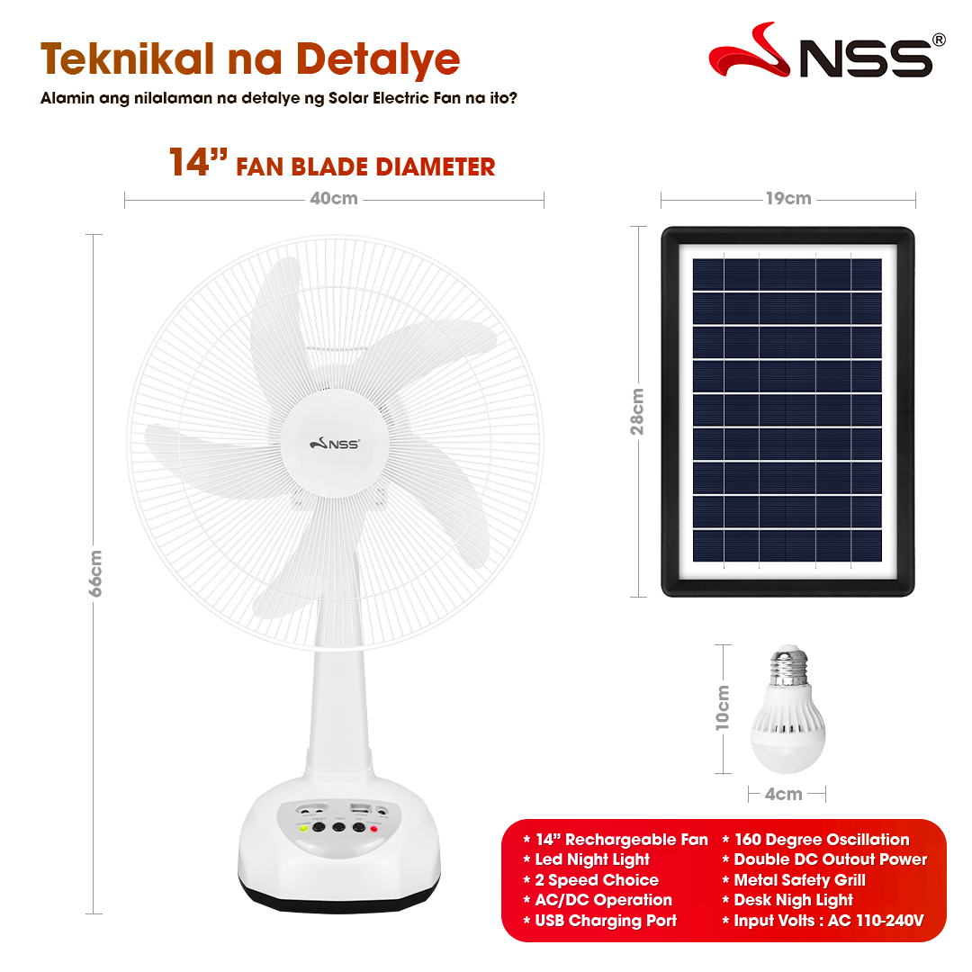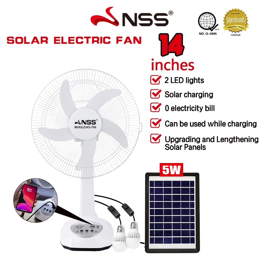 NSS solar fan Rechargeable fan 5W solar panel with LED emergency light AC/DC Solar electric Fan