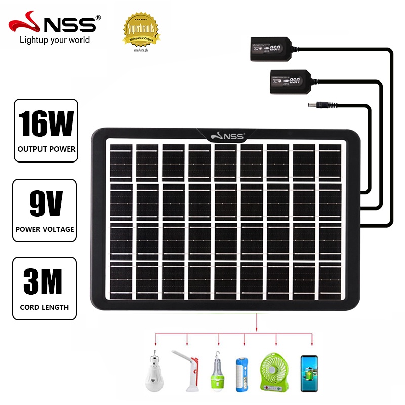 NSS solar panel phone charger 16w waterproof solar panel with type 5 usb cable for phone charging