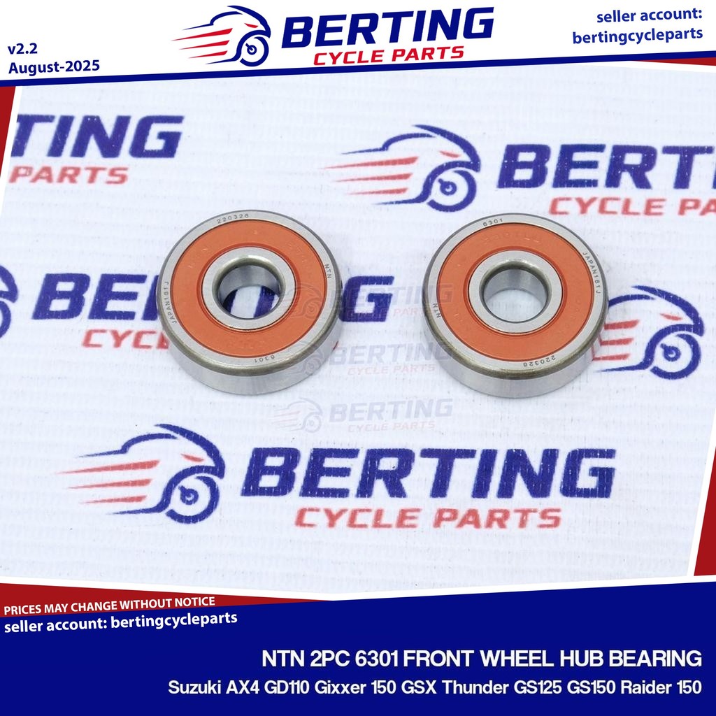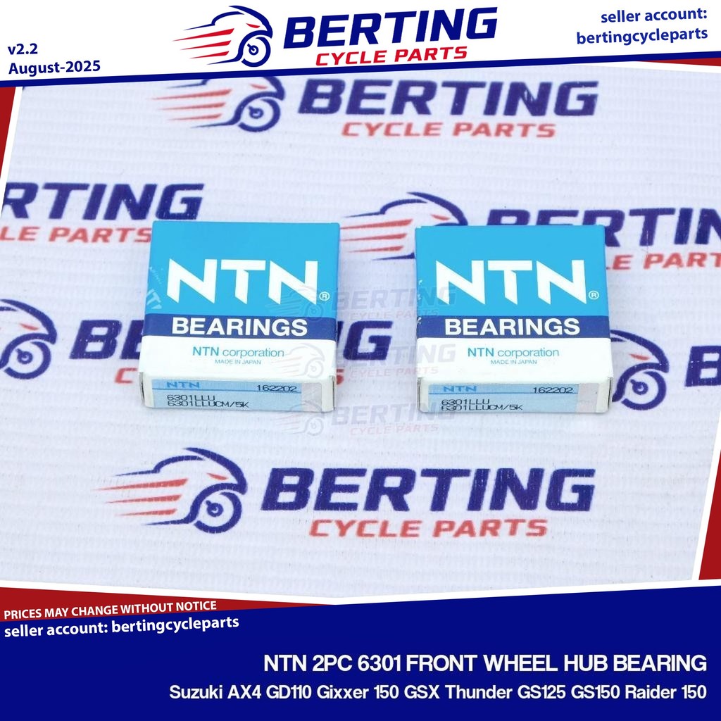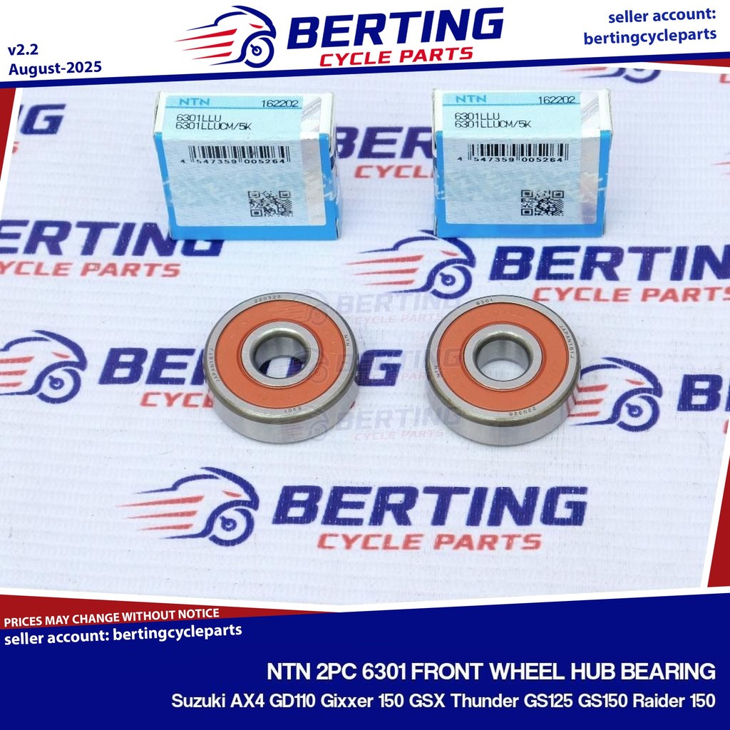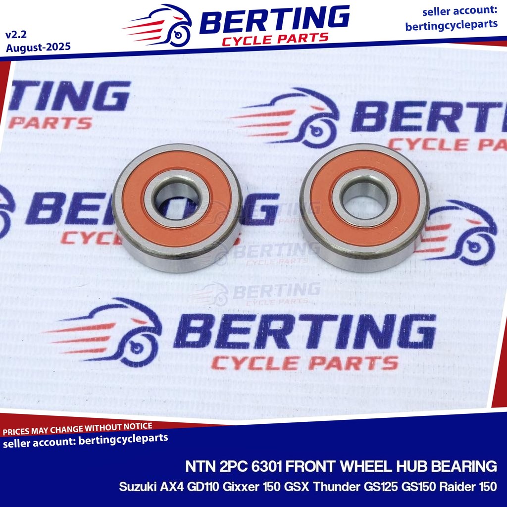 NTN 2PC 6301 FRONT WHEEL HUB BEARING Suzuki AX4 GD110 Gixxer 150 GSX Thunder GS125 GS150 Raider 150