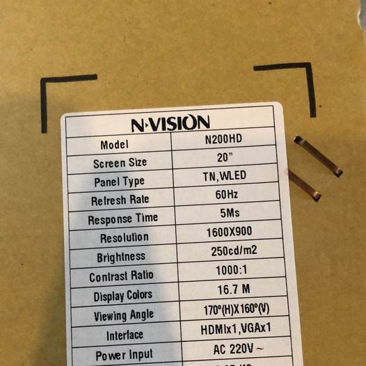 NVISION N200HD 20 INCH LED MONITOR 60HZ