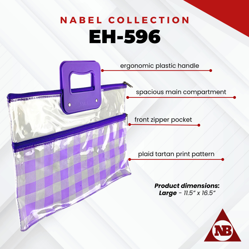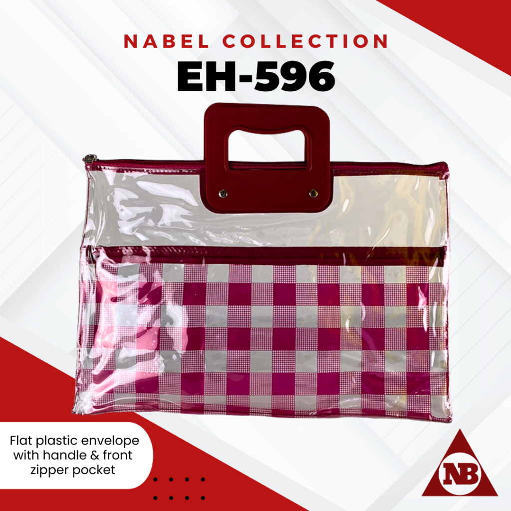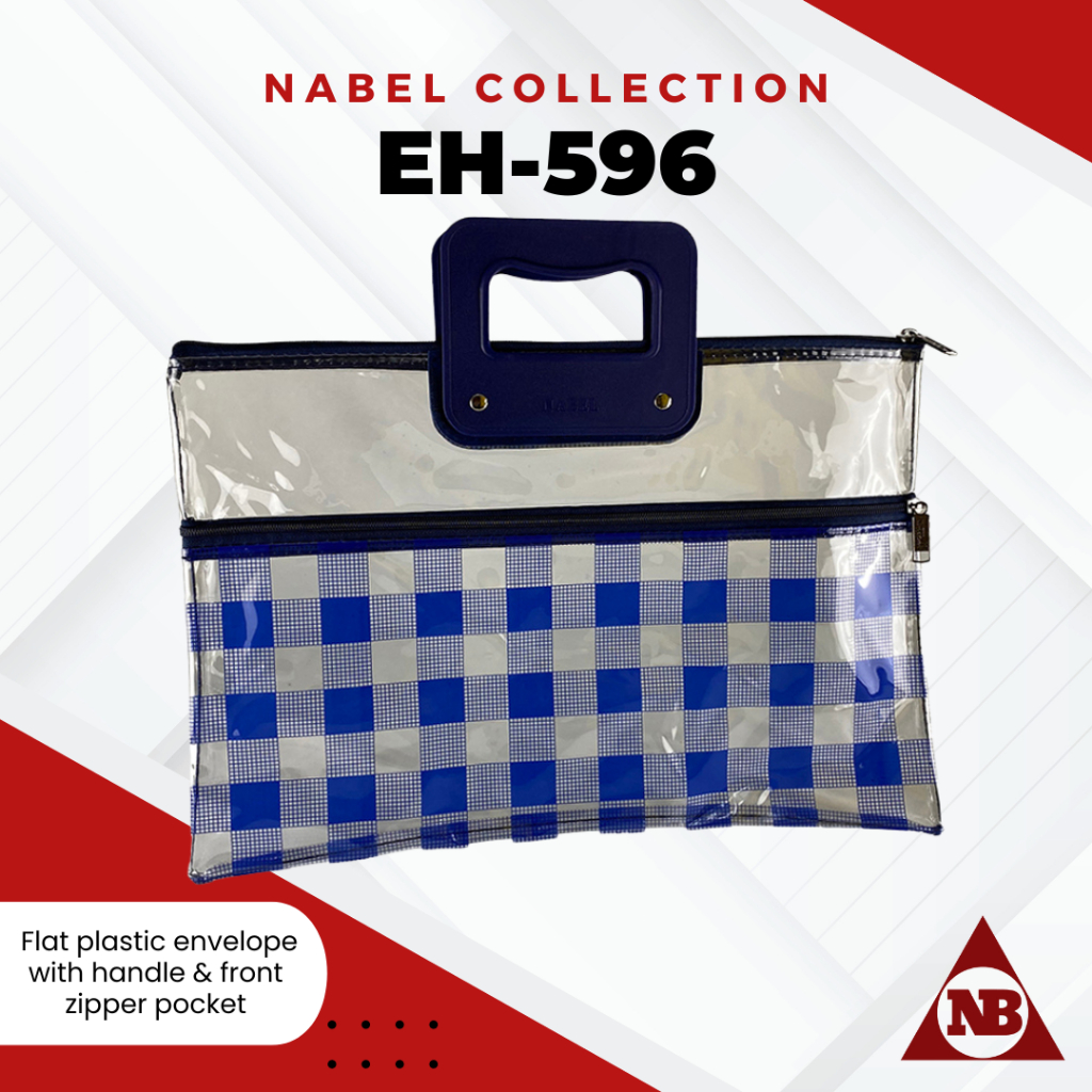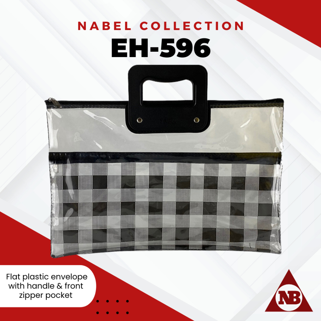 Nabel EH596 Flat Plastic Envelope with Handle and Front Pocket Zipper Plaid Tartan Pattern Legal