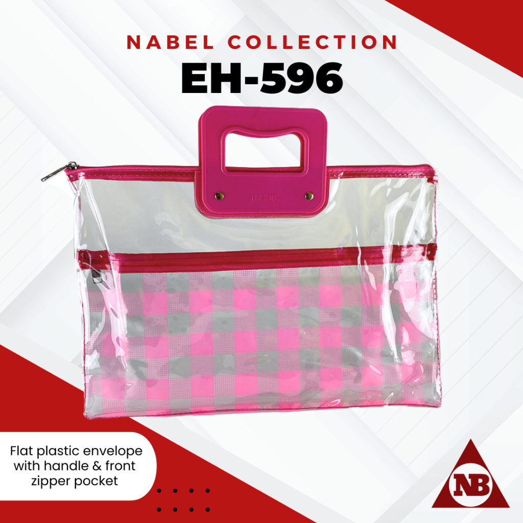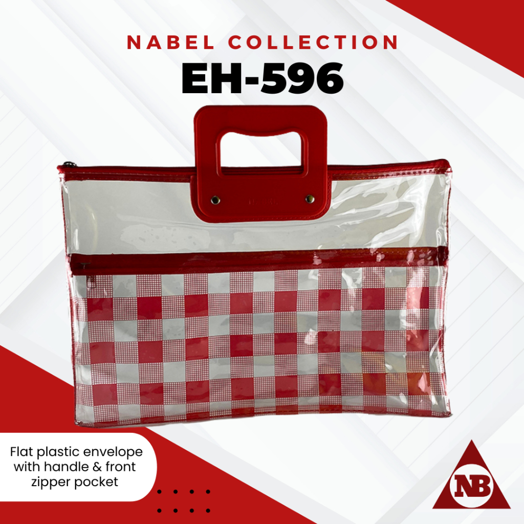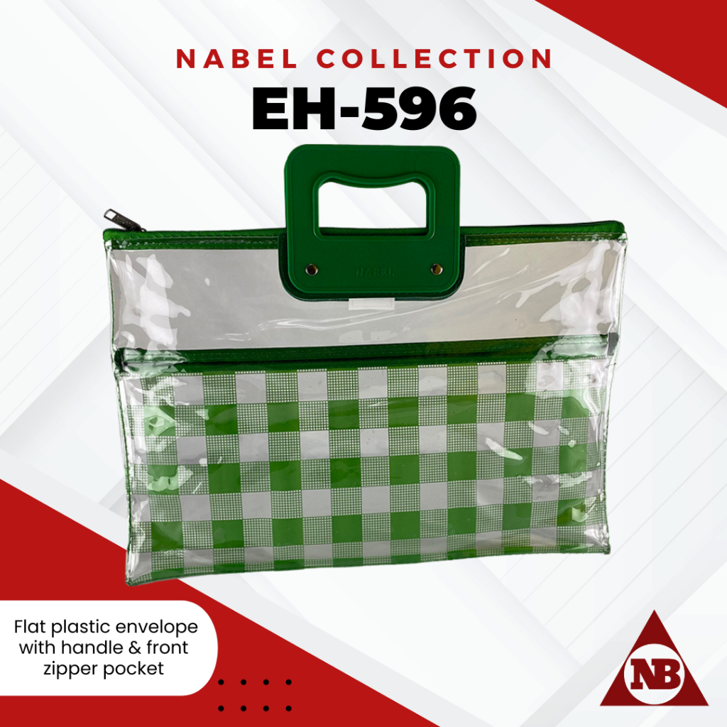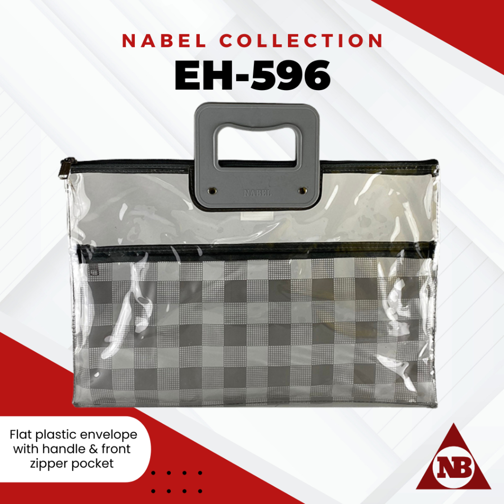 Nabel EH596 Flat Plastic Envelope with Handle and Front Pocket Zipper Plaid Tartan Pattern Legal