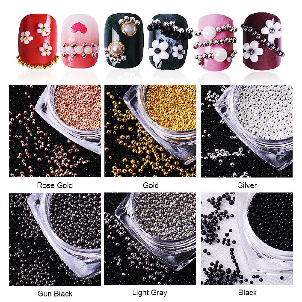 Nail Art Beads Gold Silver Rose Gold Mini Caviar Beads 3D Metal Micro Beads Ball Nail Rivets Studs for Nail Art Decorations DIY Craft Design