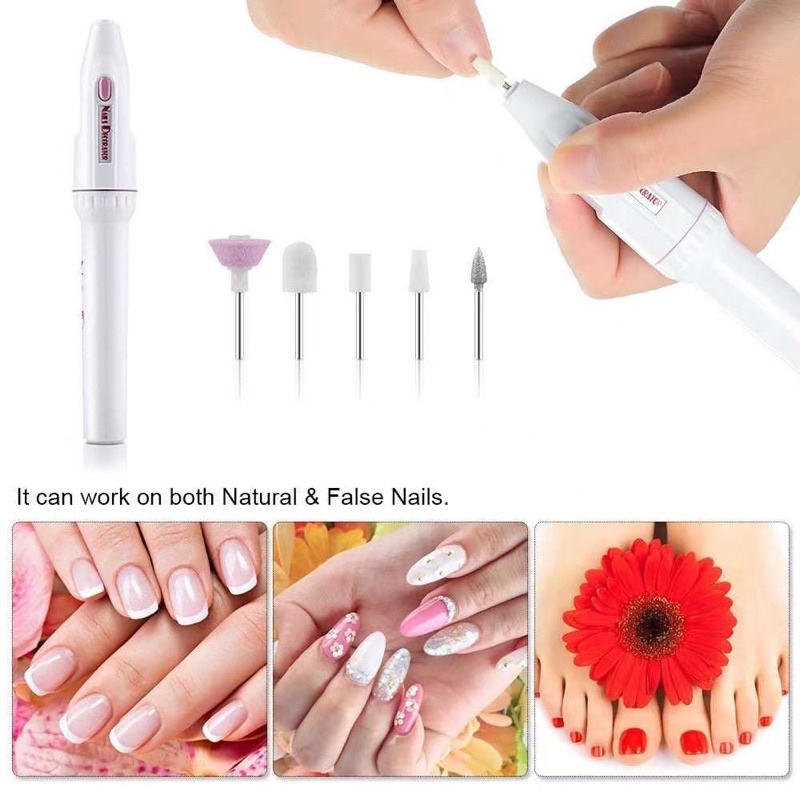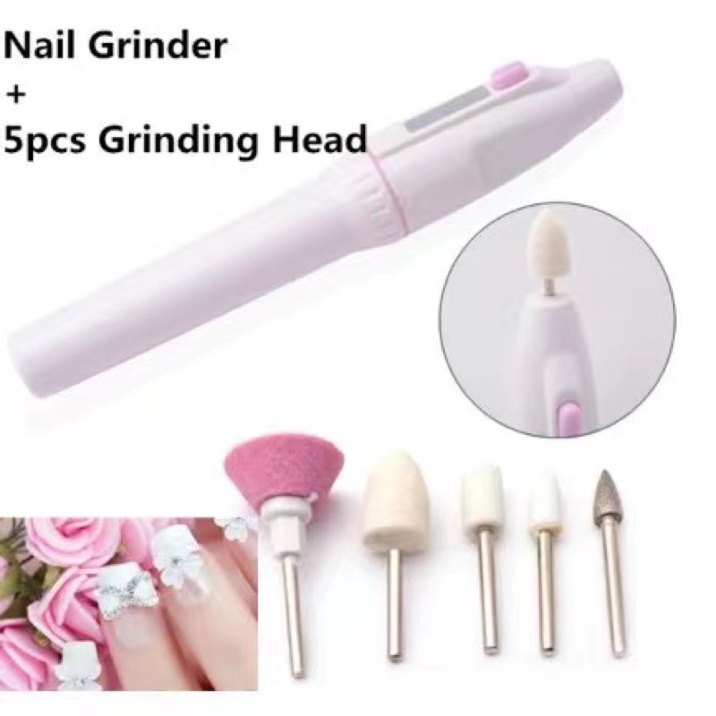 Nail Grinder Portable Machine with 5pc Set different Grinding head cuticle Nail filer drill Art FILE