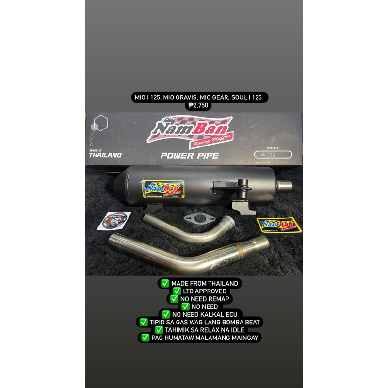 Namban Power Pipe for Click 125, Click 150/PCX 150, Mio i 125, Gear, Gravis, Aerox V1/V2, Beat