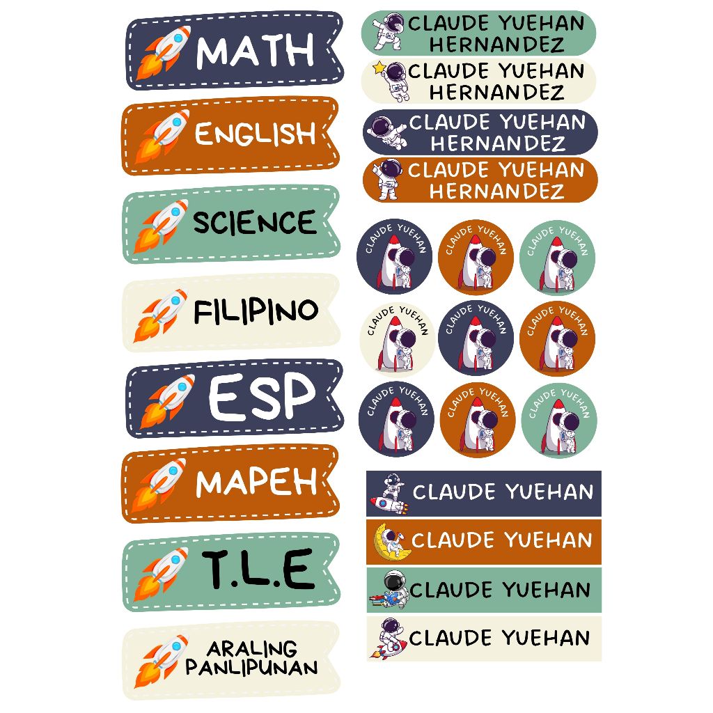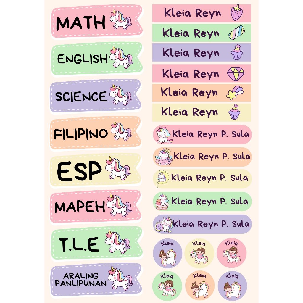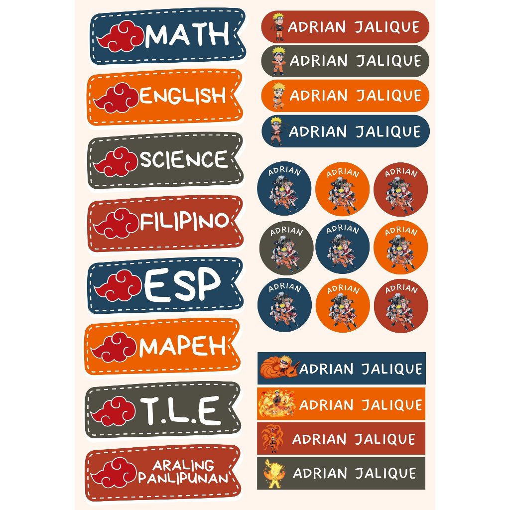 Name Sticker Subject Personalized for Notebook School Kids Label Customized Set (Uncut)