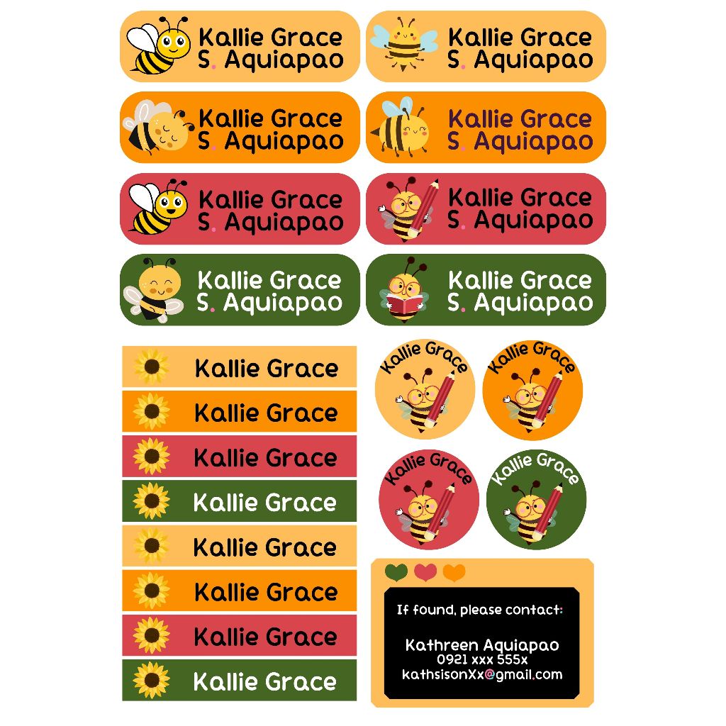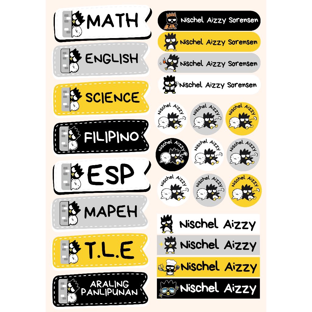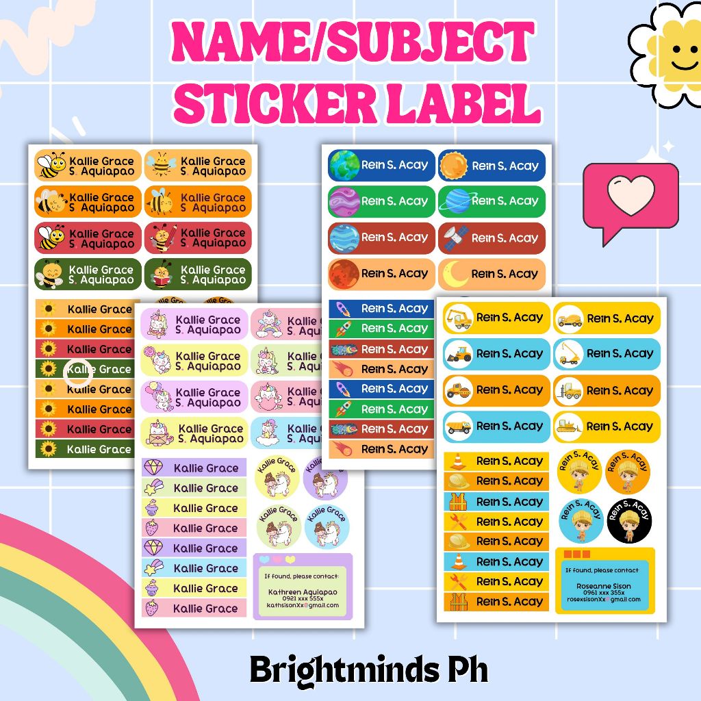 Name Sticker Subject Personalized for Notebook School Kids Label Customized Set (Uncut)