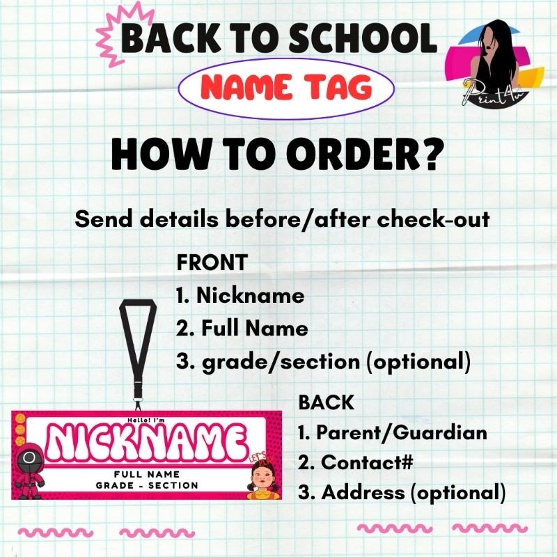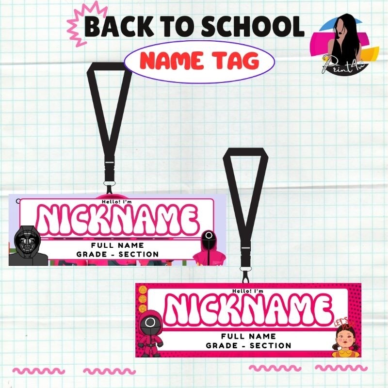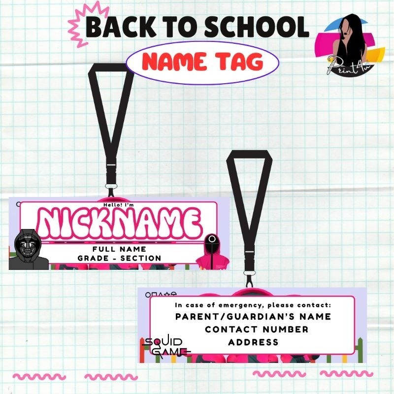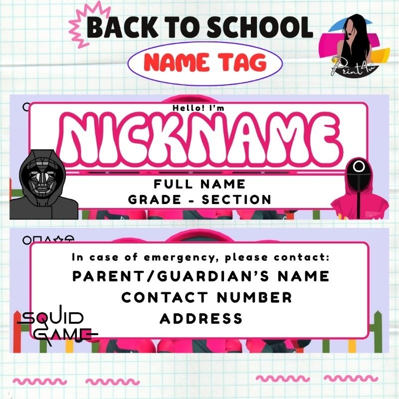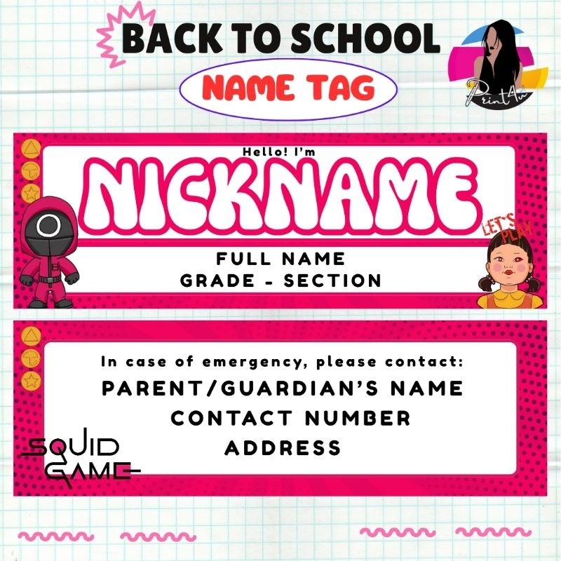 Name Tag Laminated Squid Game - nameplate for kids Back to school