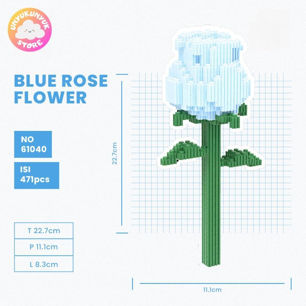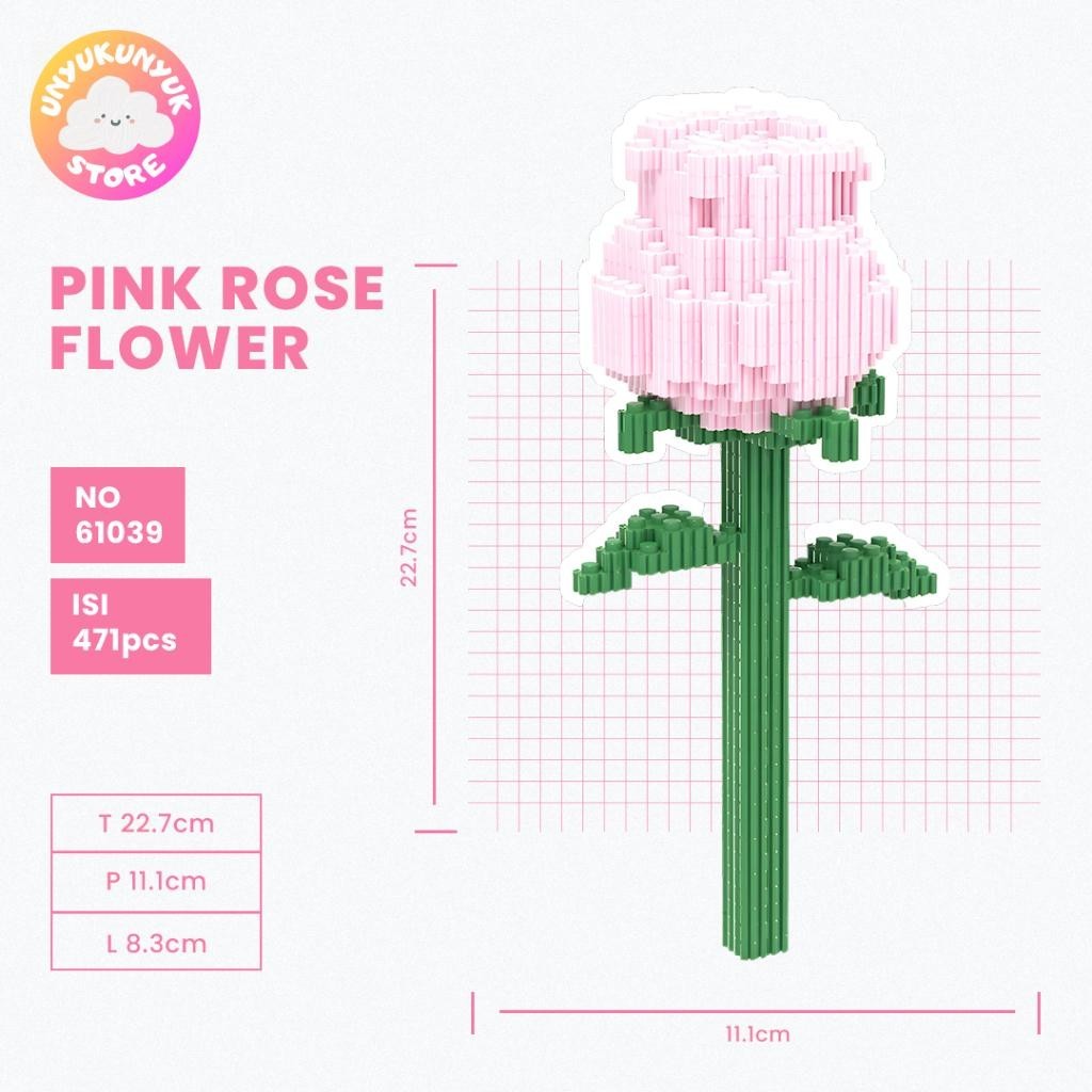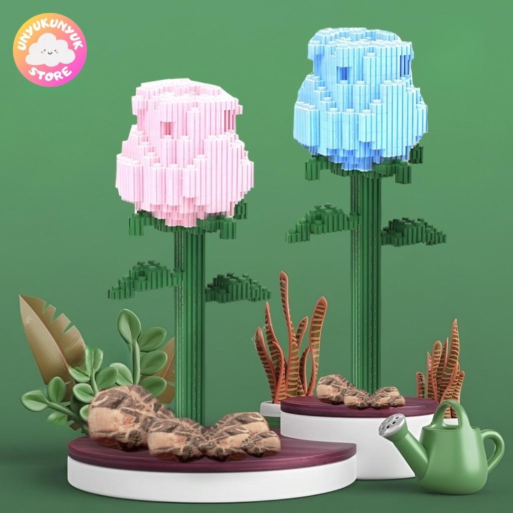 Nano Blocks Rose Flower 3D Model, Building Block Toy, DIY Construction Block, Animation Character Ornament Decoration, Children's Gift