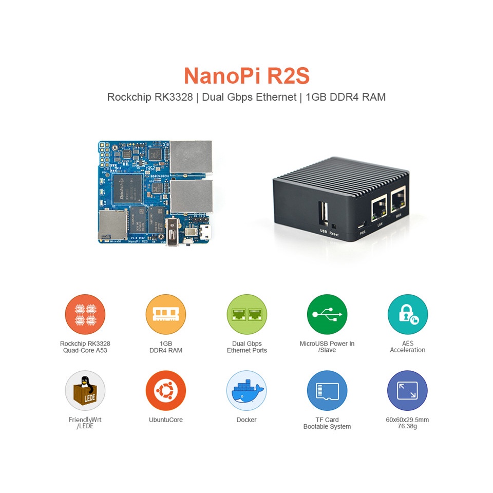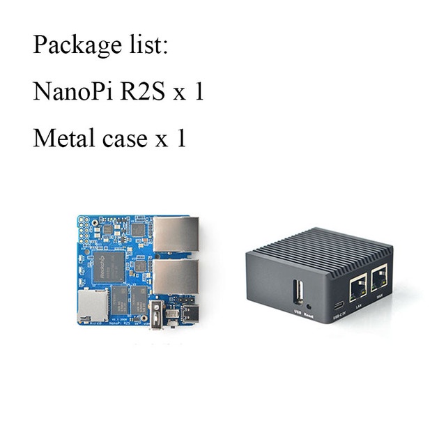 NanoPi R2S Rockchip RK3328 with CNC Metal Case Mini Router Dual Gigabit Port 1GB SBC OpenWrt System