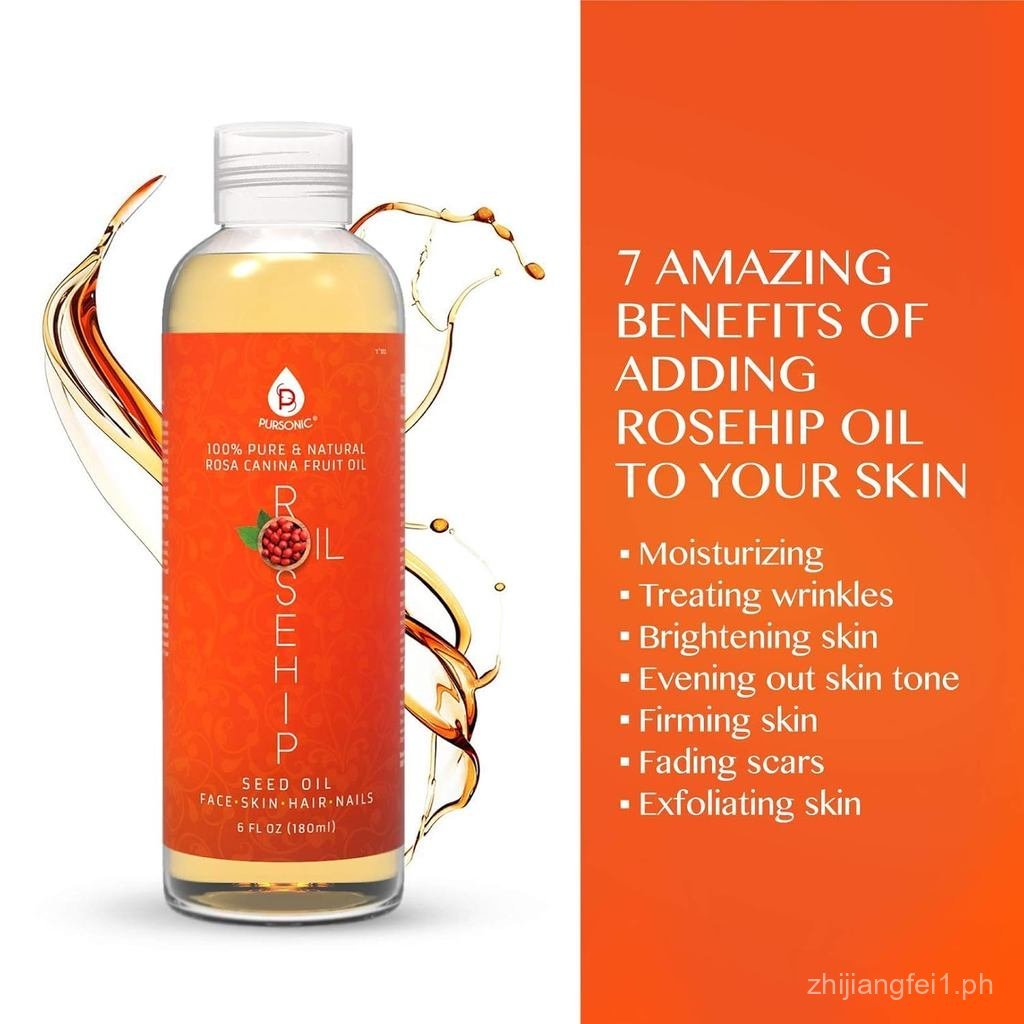 Pursonic 100% Pure Cold-Pressed Rosehip Oil – 6 FL oz Moisturizing Facial Oil for Face, Hair, Skin & Nails,Anti-Aging, Hydrating, Brightening, Scar & Stretch Mark Care - Pack of 1