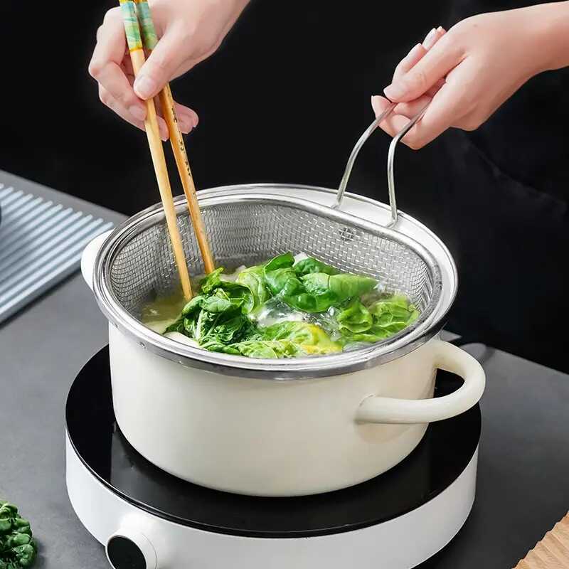 Stainless Steel Colander Mesh Basket Kitchen Strainer For Cooking Frying, Hot Pot, Blanching