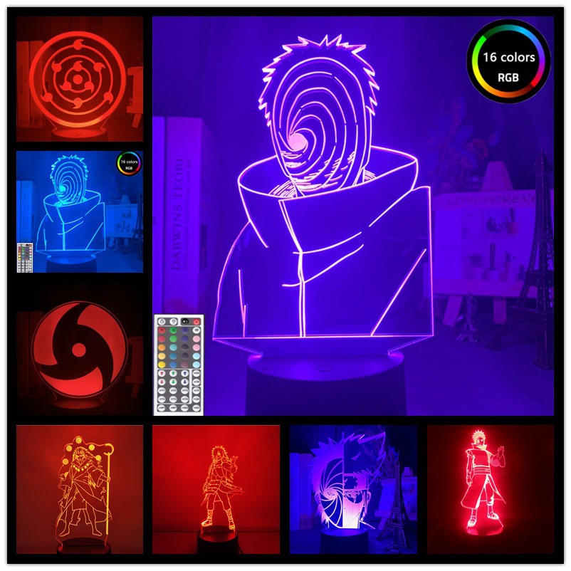 Naruto Obito Madara Night Light Touch Remote Colors Changing Bedside Lamp Cool Gift for Anime Fans Bedroom Decor