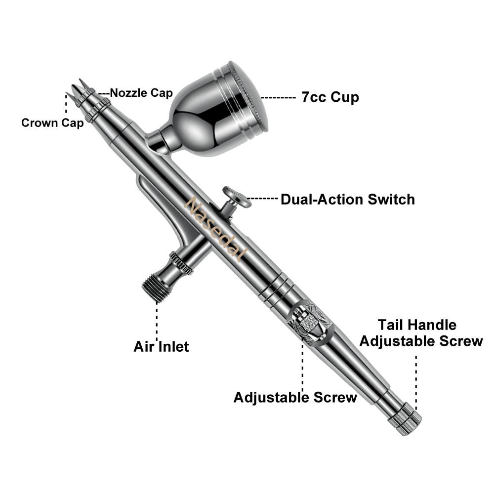 Nasedal Newest 0.3mm Dual-Action Airbrush 7cc Cup Air Brush Sprayer for Nail Art Make-up Paint Tool Model Painting Craft Cake Decoration DIY Tool NT-190