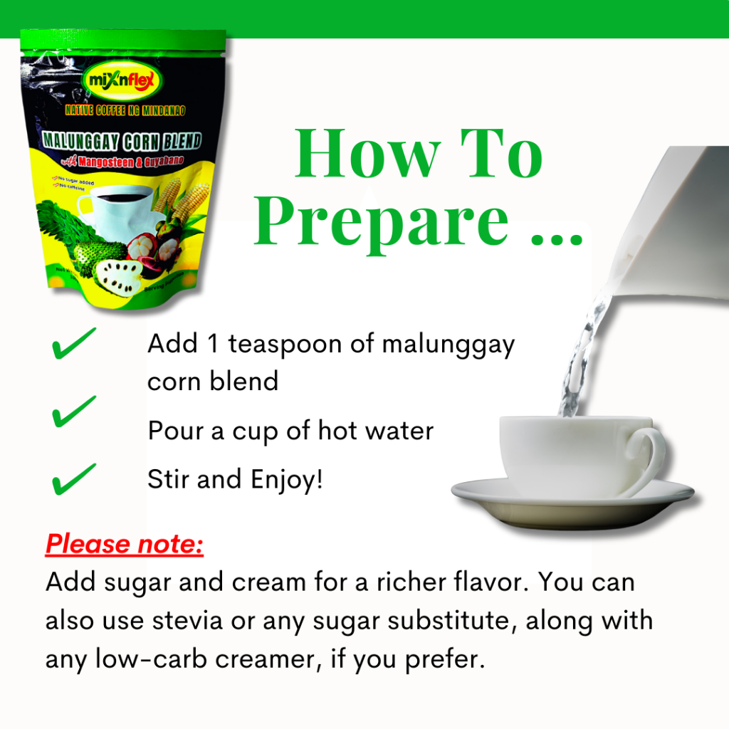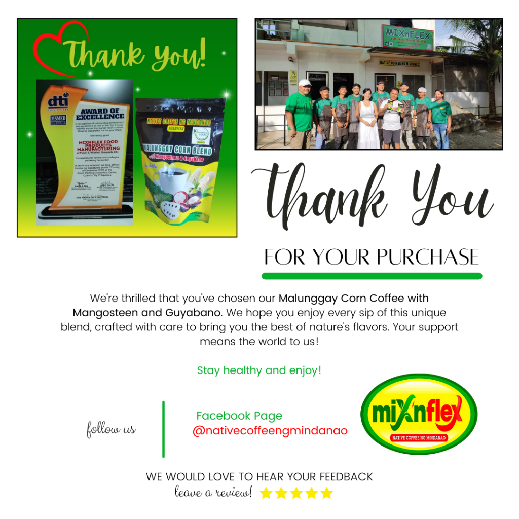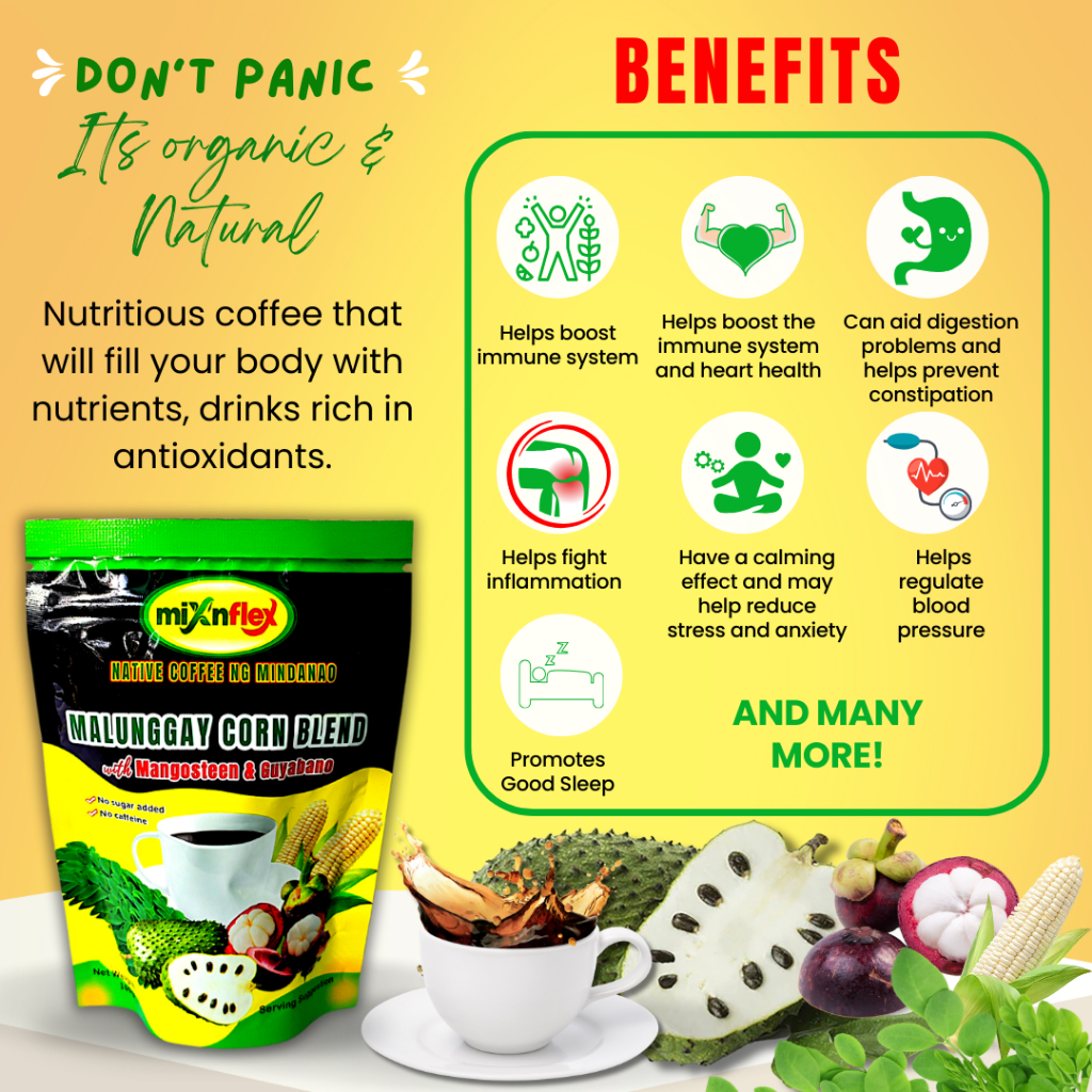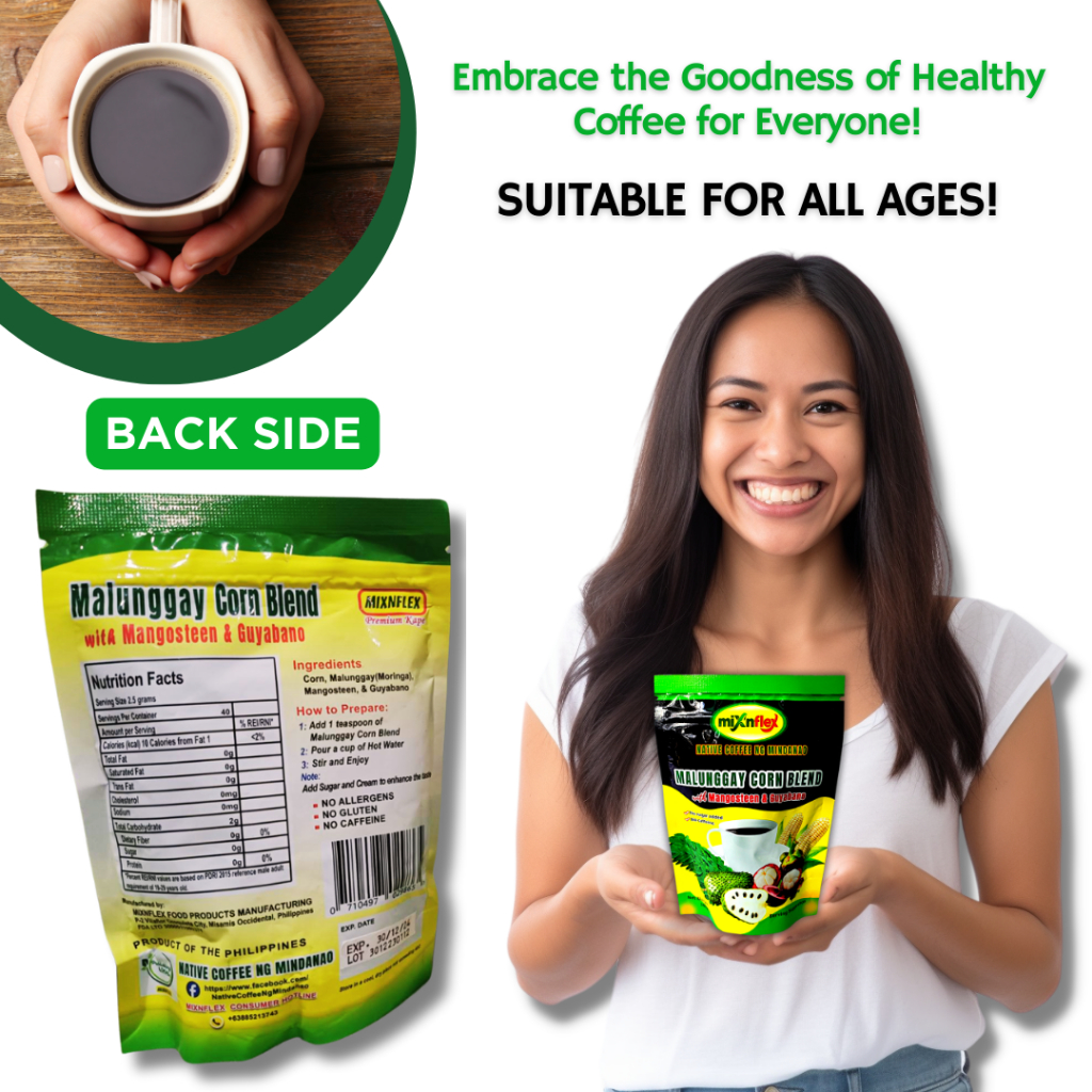 Native Coffee ng Mindanao Malunggay Corn Coffee with Mangosteen ang Guyabano, 100 grams per Pouch
