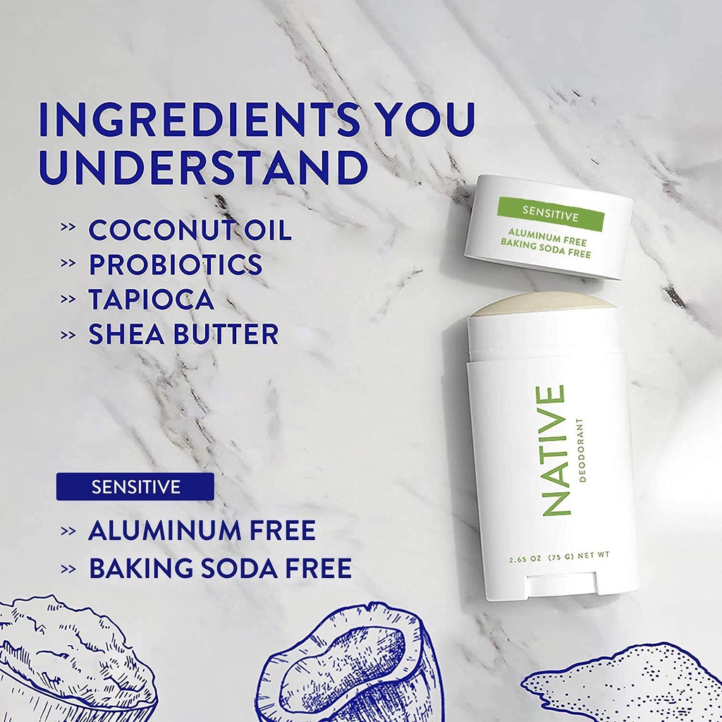 Native Deodorant Sensitive Natural Deodorant for Women and Men Baking Soda Free, Natural Ingredients