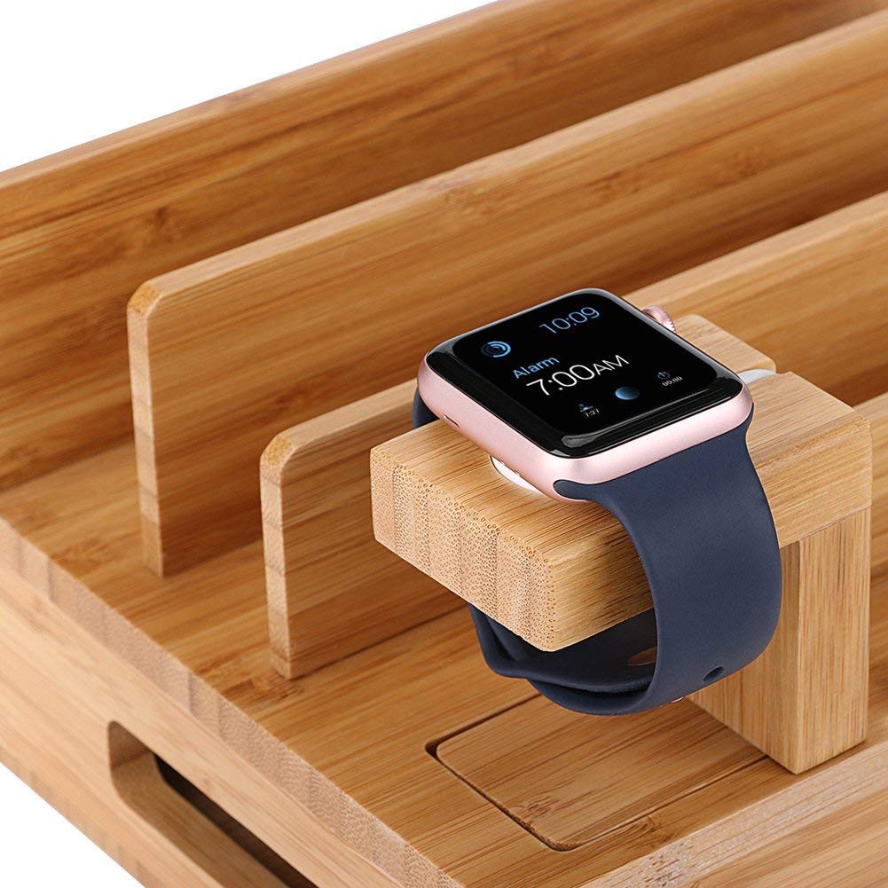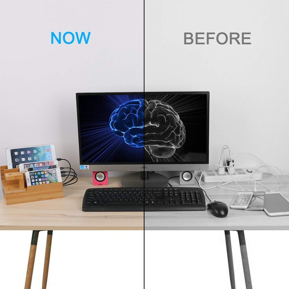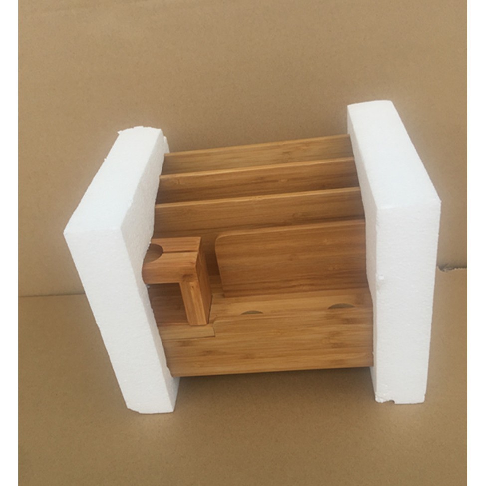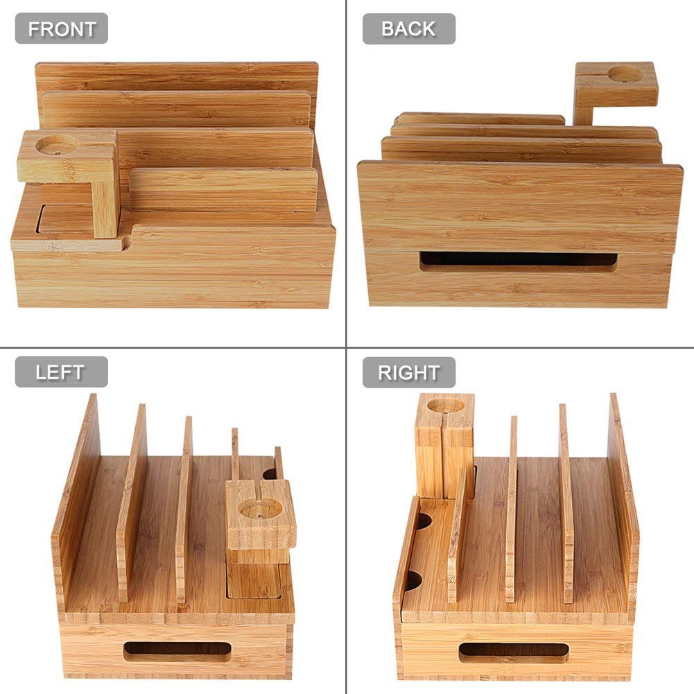 Natural Bamboo Charging Stand Multiple Devices Organizer Wooden Charging Docking Station for Smart Phone Pad Tablet Home