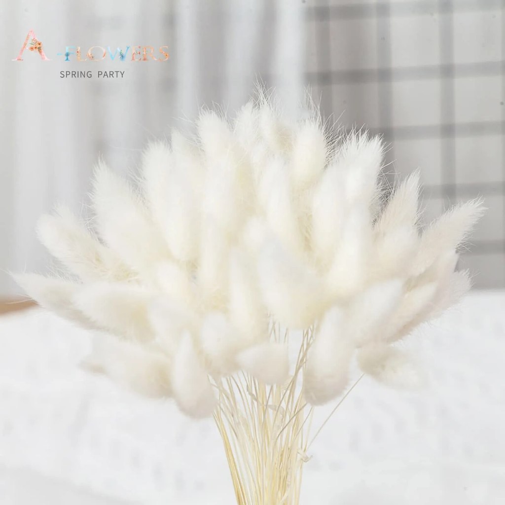 Natural Dried Bunny Tail Grass -60 Stems Rabbit Tail Grass, Lagurus Ovatus for Boho Decor, Dried Pampas Grass Flower Arrangements Wedding Home Kitchen