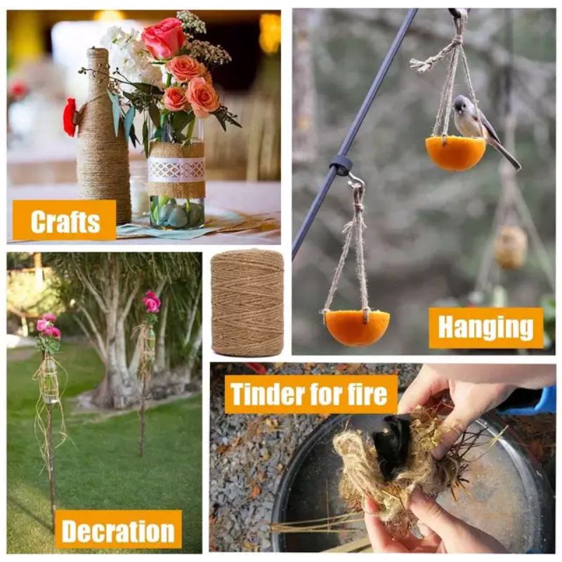 Natural Hemp Cord Jute Twine | Jute String | Abaca String | 2ply 100m & 300m for arts and crafts