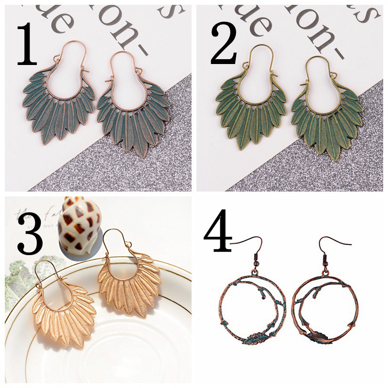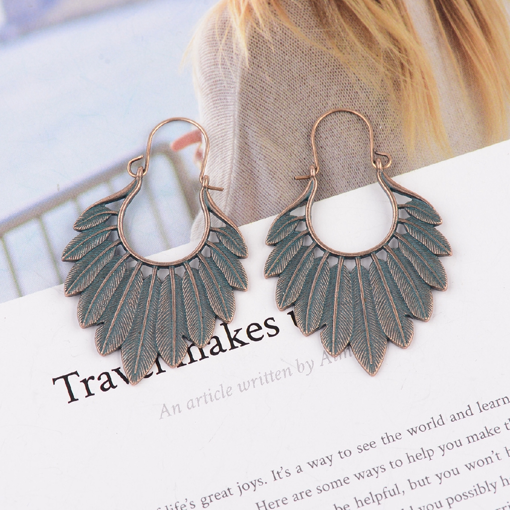 Natural Style Ethnic Big Leaf Dangle Earrings Women Verdigris Tribe Gypsy Summer Ladies Earrings Oorbellen