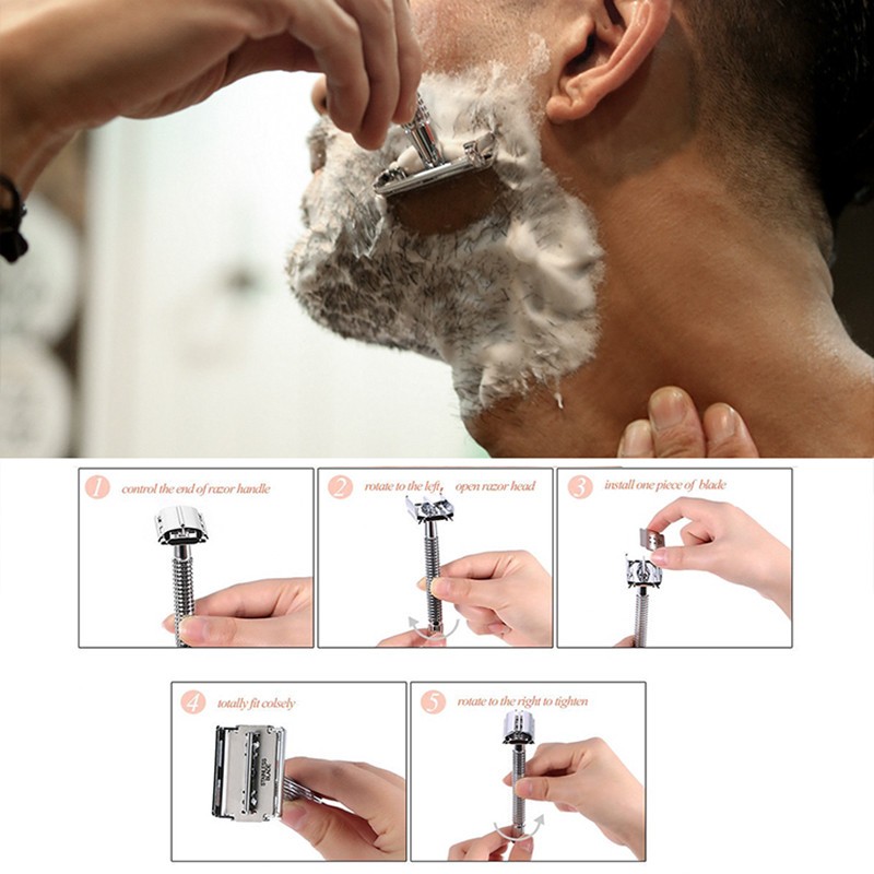 Man Razor Shaver Manual Shaver Stainless Steel Double Safety Metal Razor With Blade Brush Case